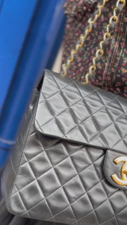 Chanel Vintage Black Lambskin Leather Maxi Single Flap