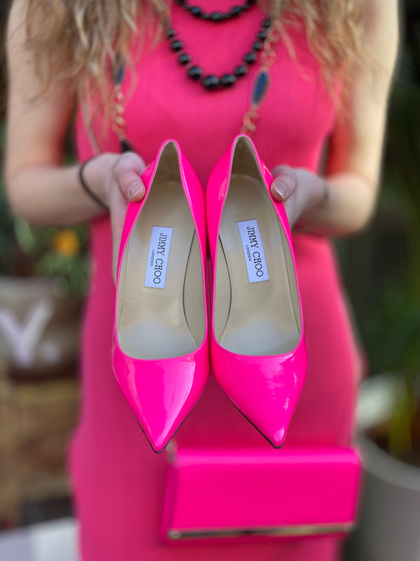 Jimmy Choo Pink Leather Dory Patente Sandals - Size UK 7.5