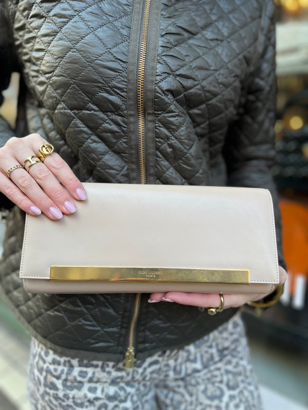Saint Laurent Sage Green Cassandre Matelassé Flap Pouch in Quilted Grain de Poudre Embossed Leather