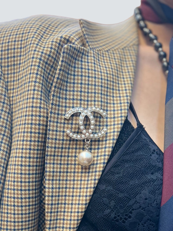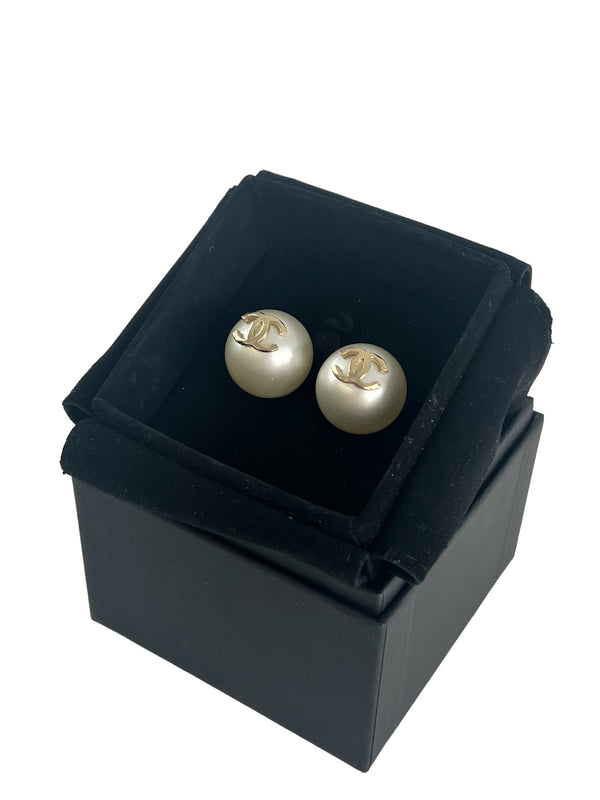 Chanel Large Champagne Gold CC & Faux Pearl Earrings