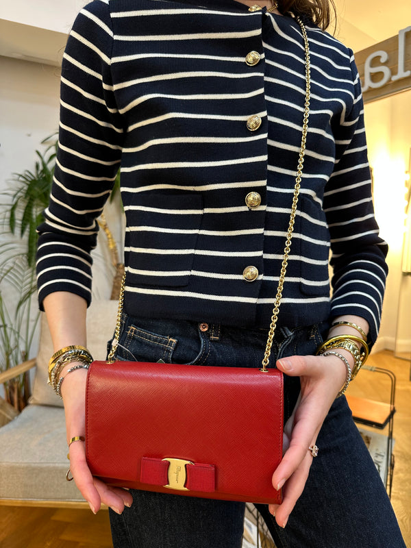 Salvatore Ferragamo Red Leather Crossbody Clutch