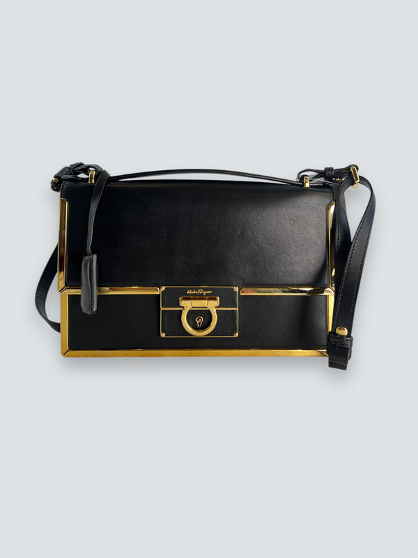 Salvatore Ferragamo Tan Structured Leather Satchel