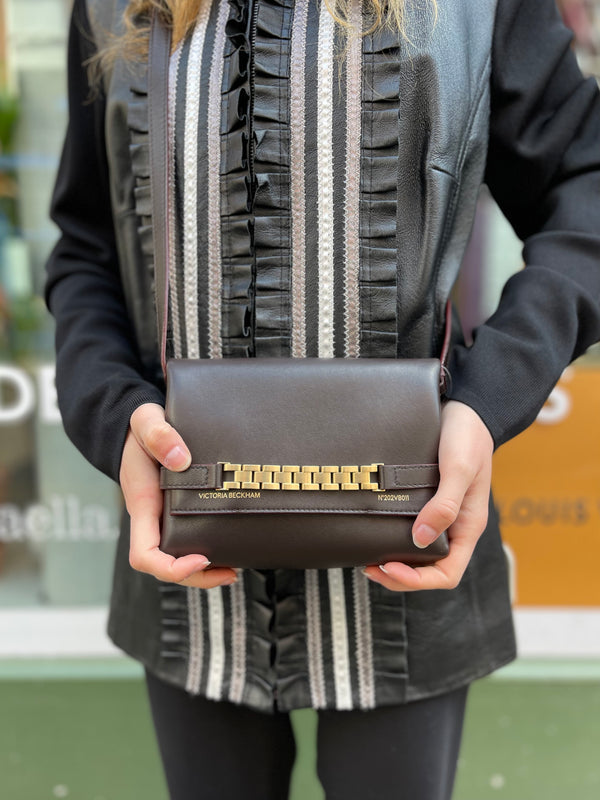 Victoria Beckham Chocolate Brown Croc Embossed Leather Clutch