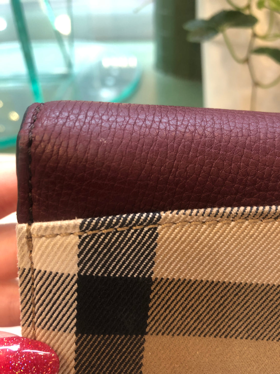 Burberry Checked Canvas & Burgundy Leather Wallet