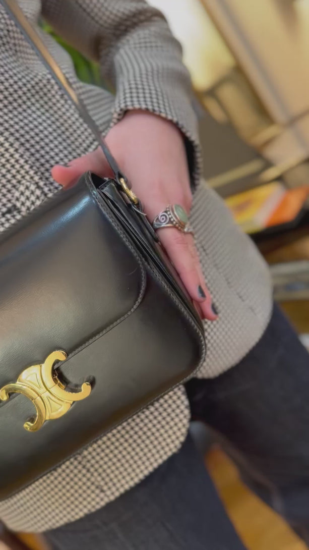 Celine Black Shiny Calfskin Leather Medium Triomphe Shoulder Bag