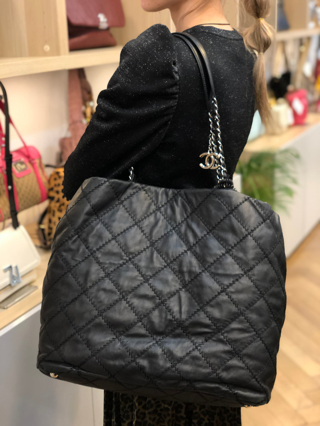 Chanel Black Lambskin Leather Large Stitched Tote - As Seen on Instagram