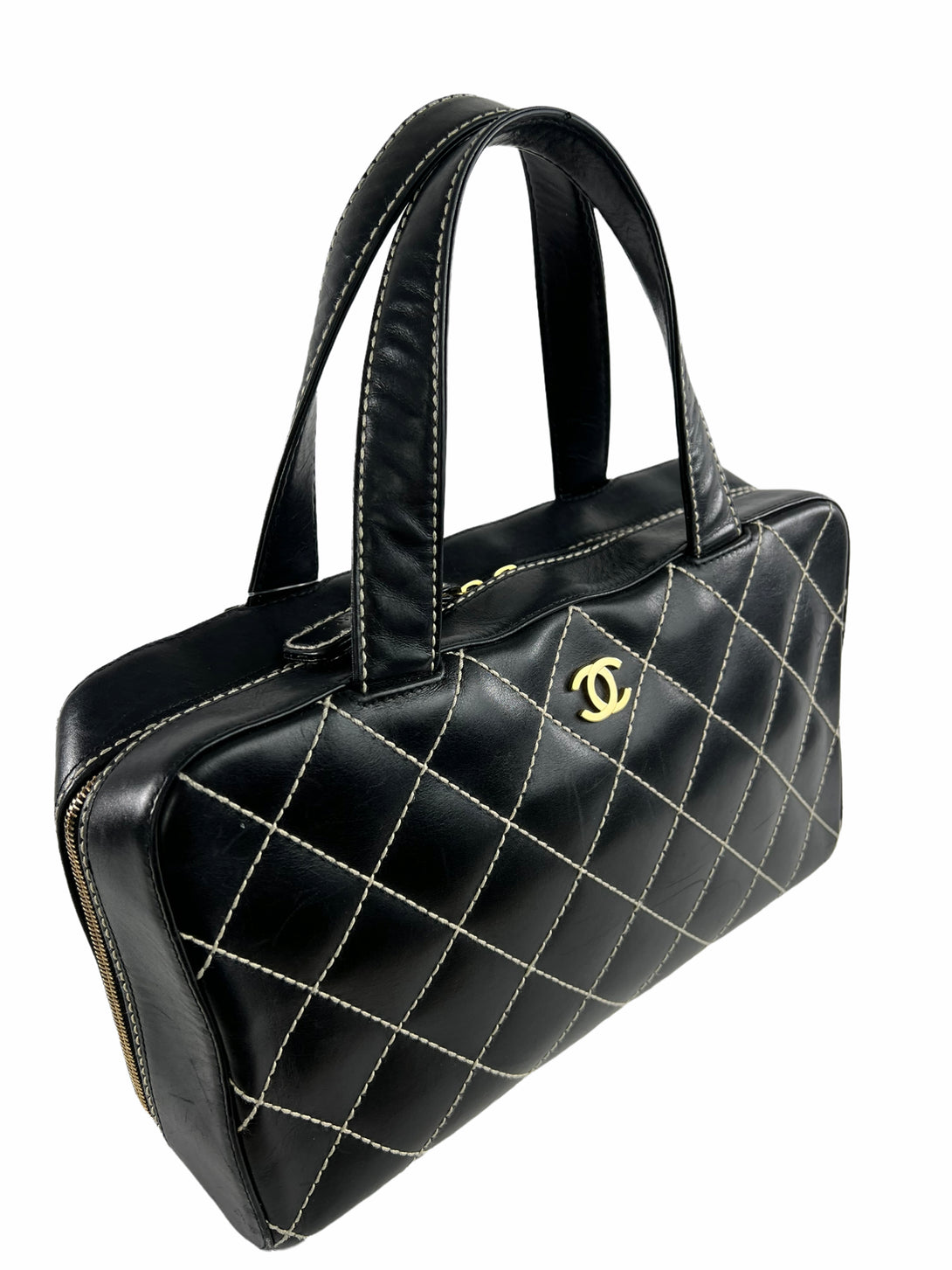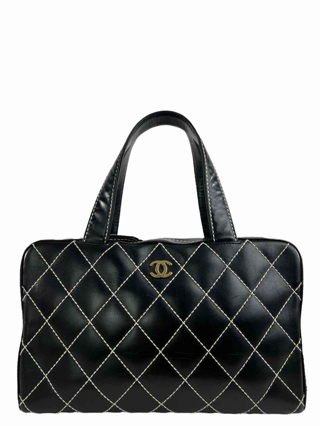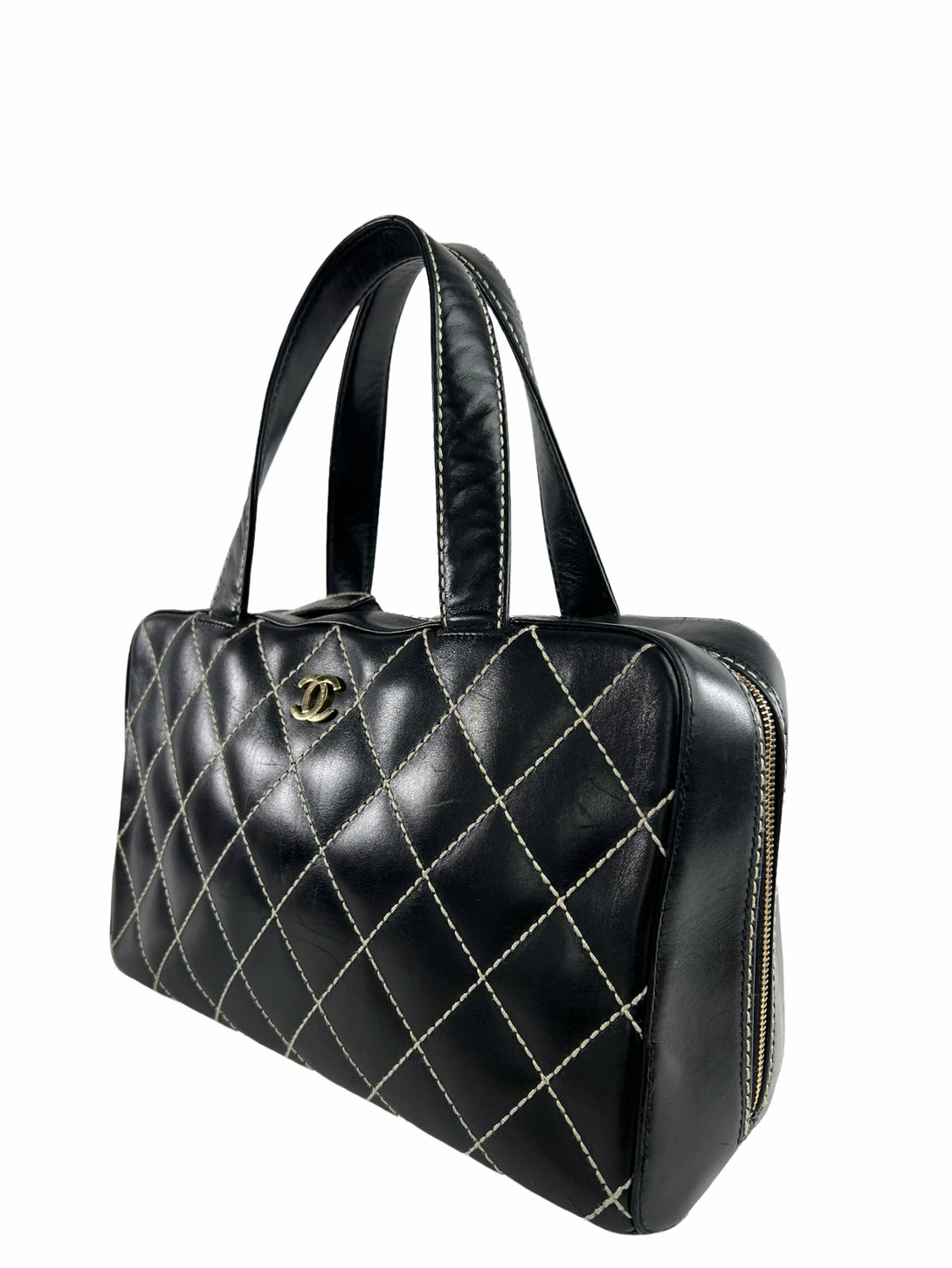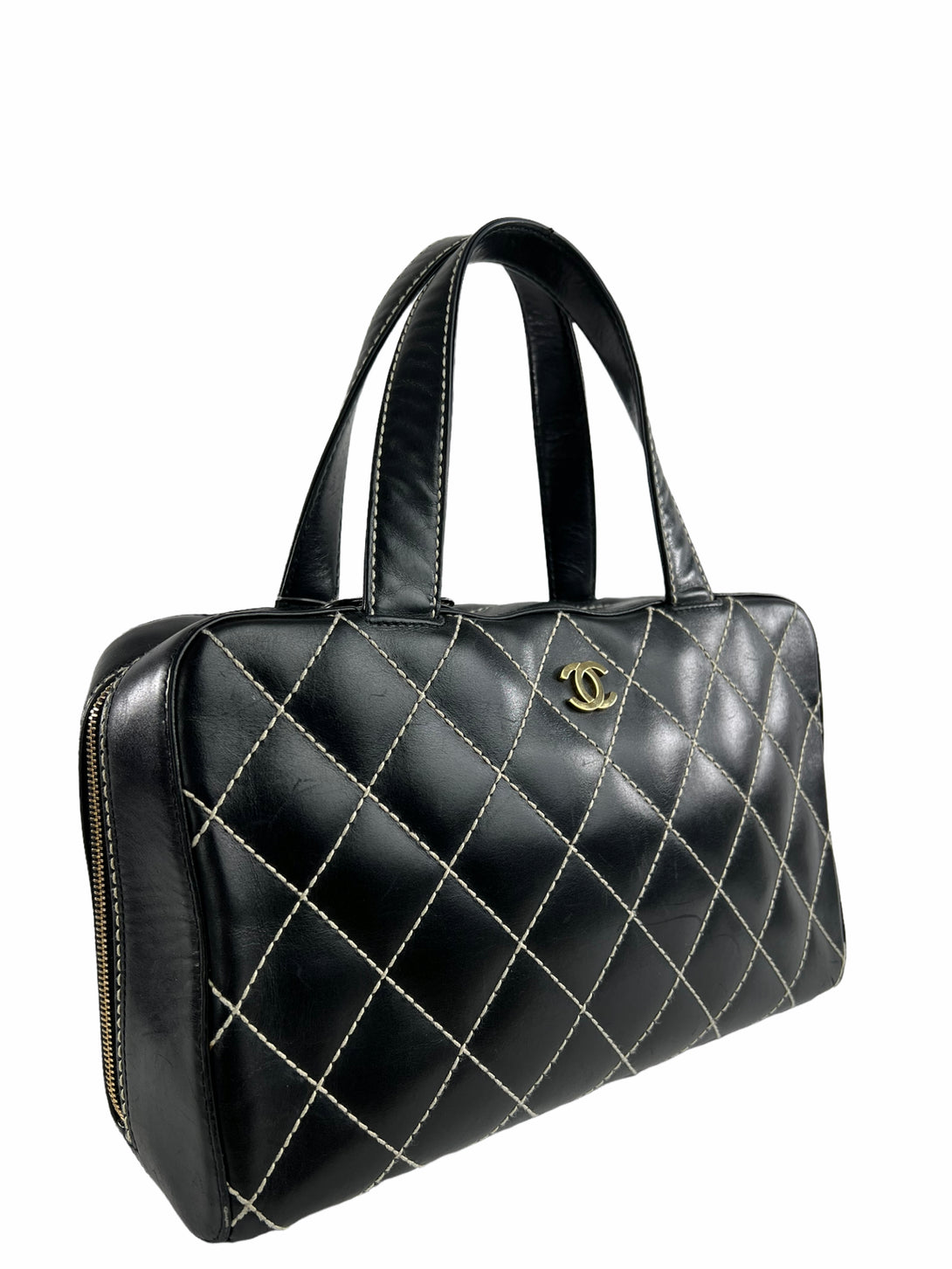 Chanel Black Quilted Leather Surpique Boston Bag