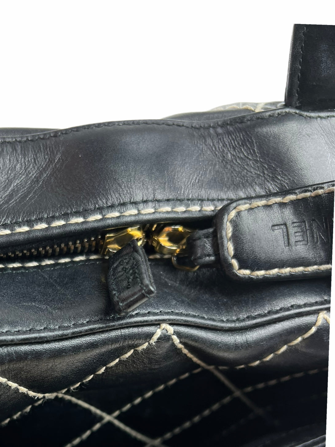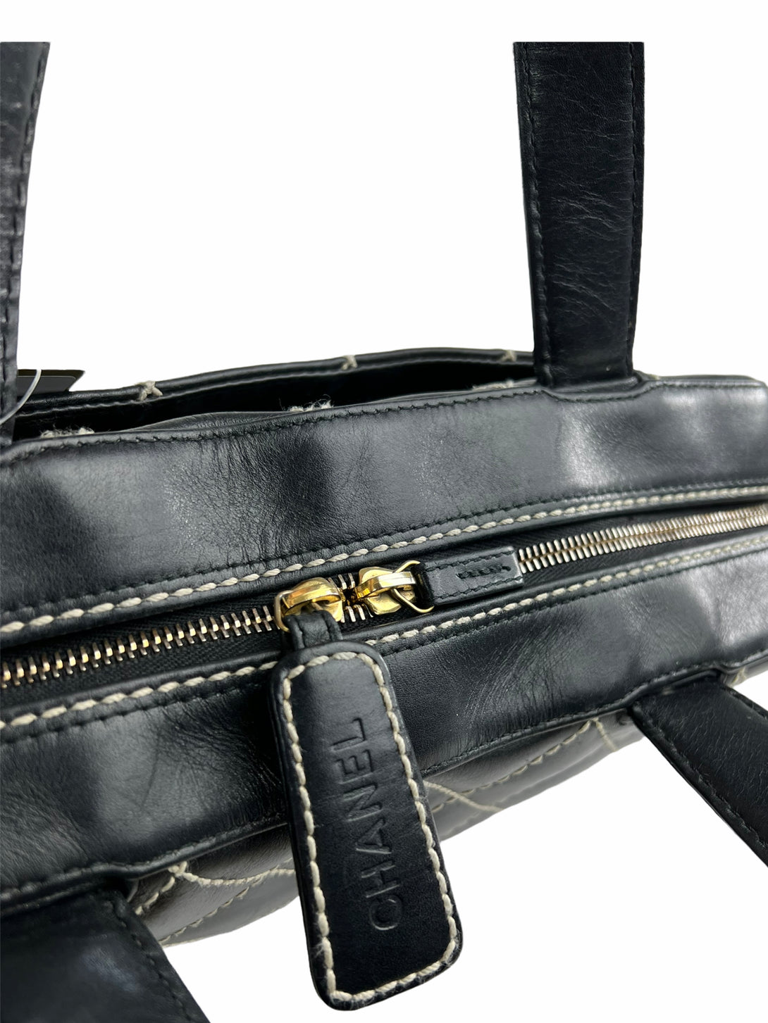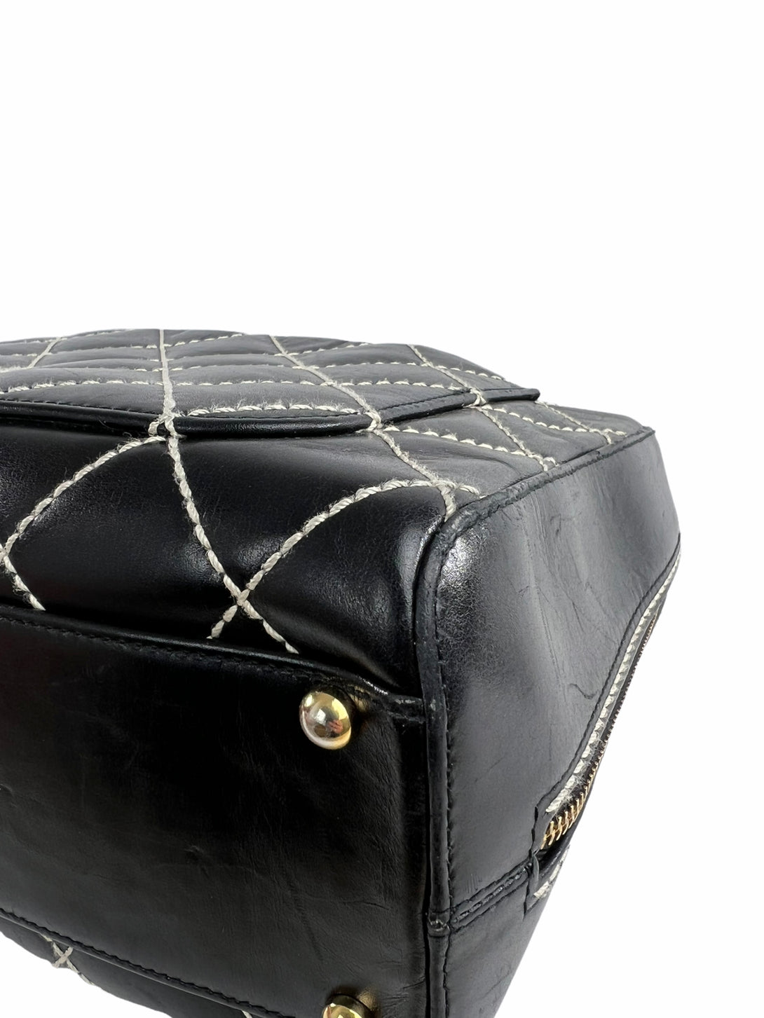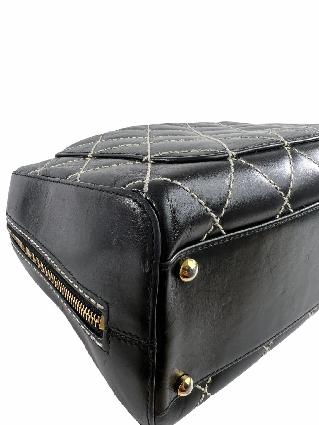 Chanel Black Quilted Leather Surpique Boston Bag