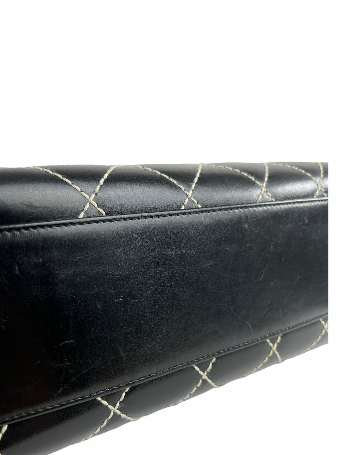 Good: Items show more prominent wear such as noticeable discoloration, stains and snags to fabric. May have worn corners and handles, tarnishing to hardware and creasing to leather. Pen or make up marks may be visible in the interior of the bag.
