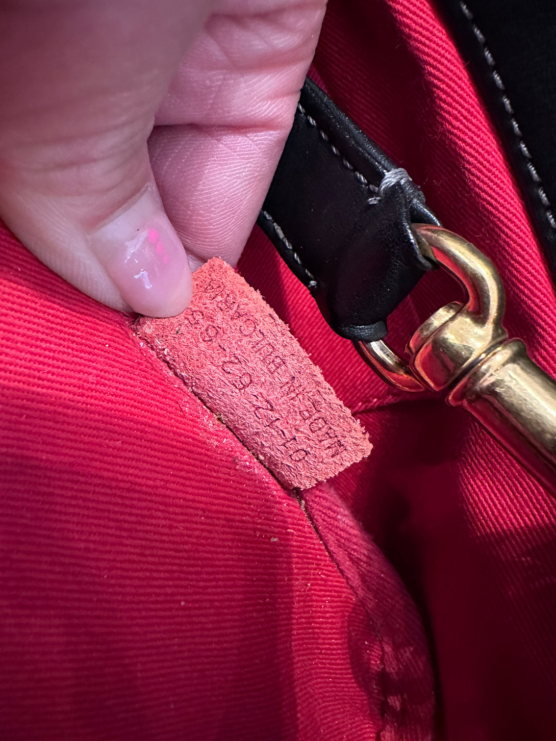 Good: Items show more prominent wear such as noticeable discoloration, stains and snags to fabric. May have worn corners and handles, tarnishing to hardware and creasing to leather. Pen or make up marks may be visible in the interior of the bag.
