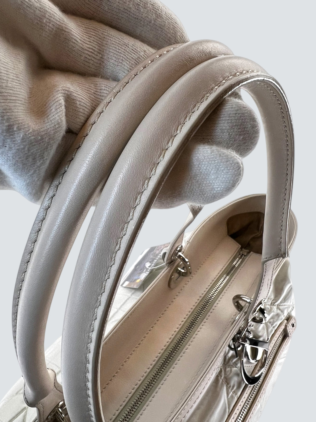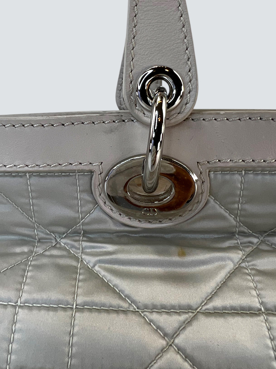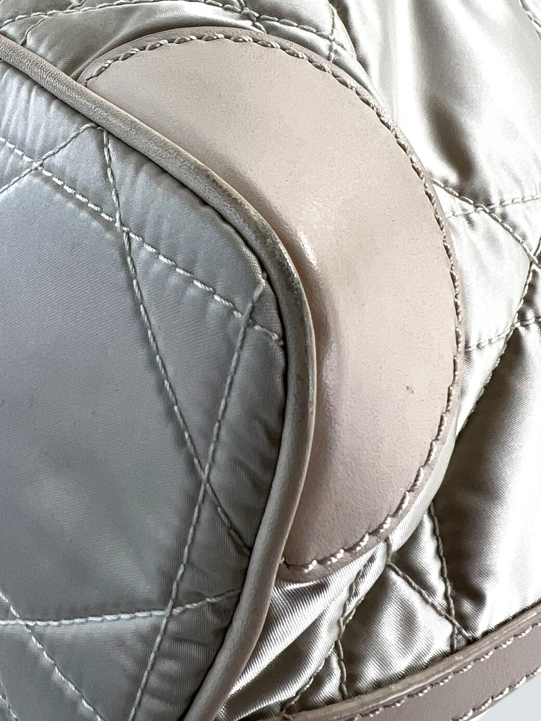 Good: Items show more prominent wear such as noticeable discoloration, stains and snags to fabric. May have worn corners and handles, tarnishing to hardware and creasing to leather. Pen or make up marks may be visible in the interior of the bag.