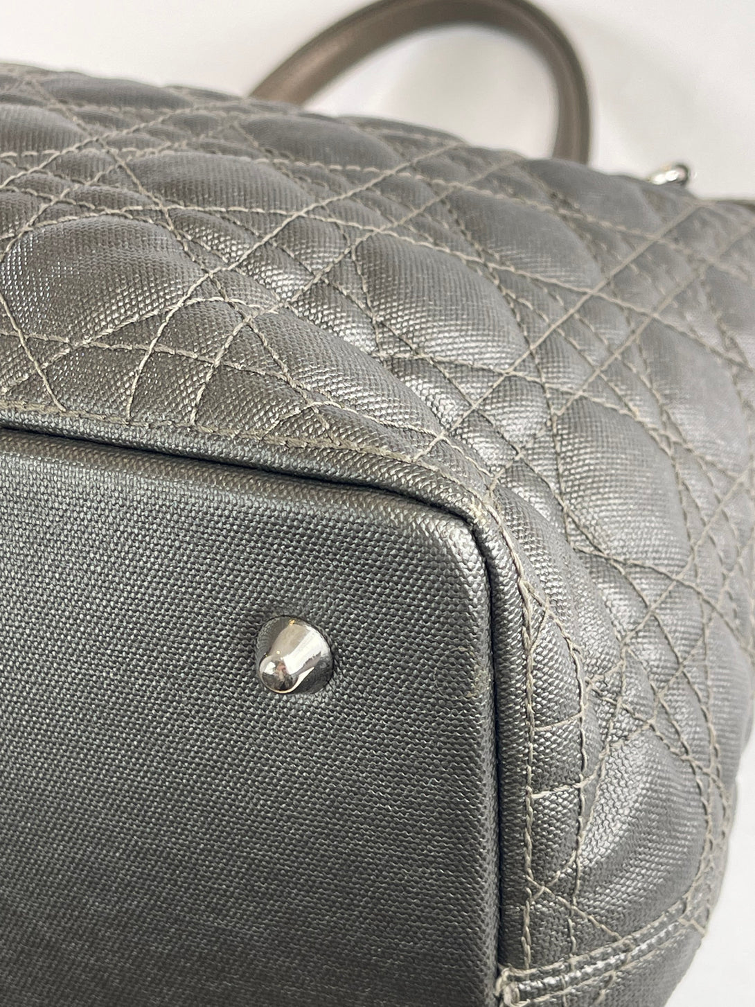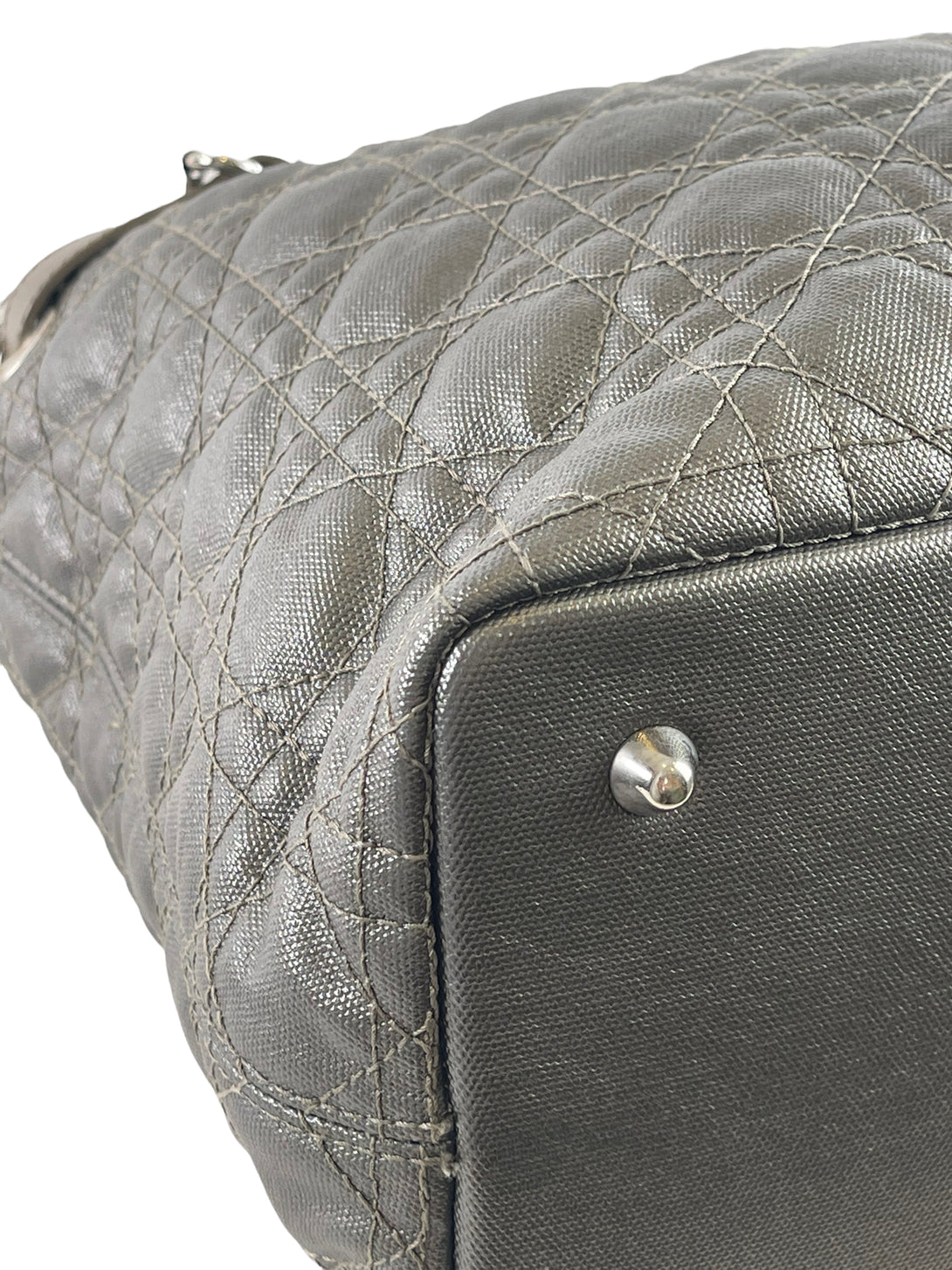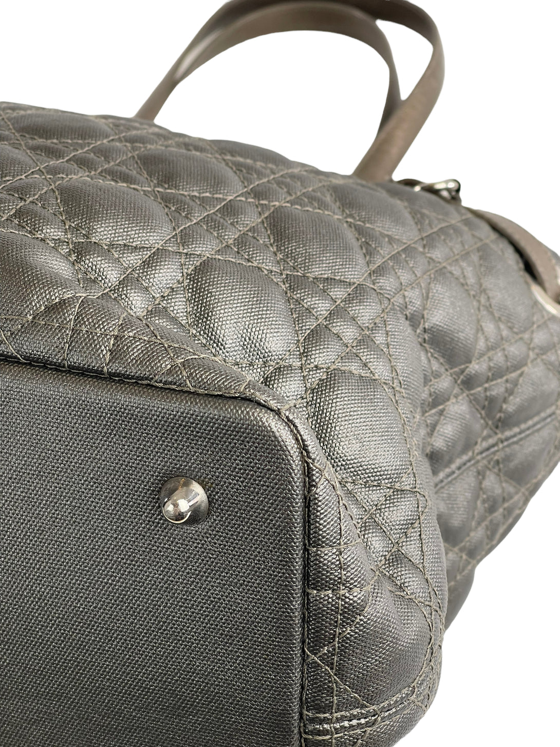 Christian Dior Grey Cannage Quilted Canvas Tote