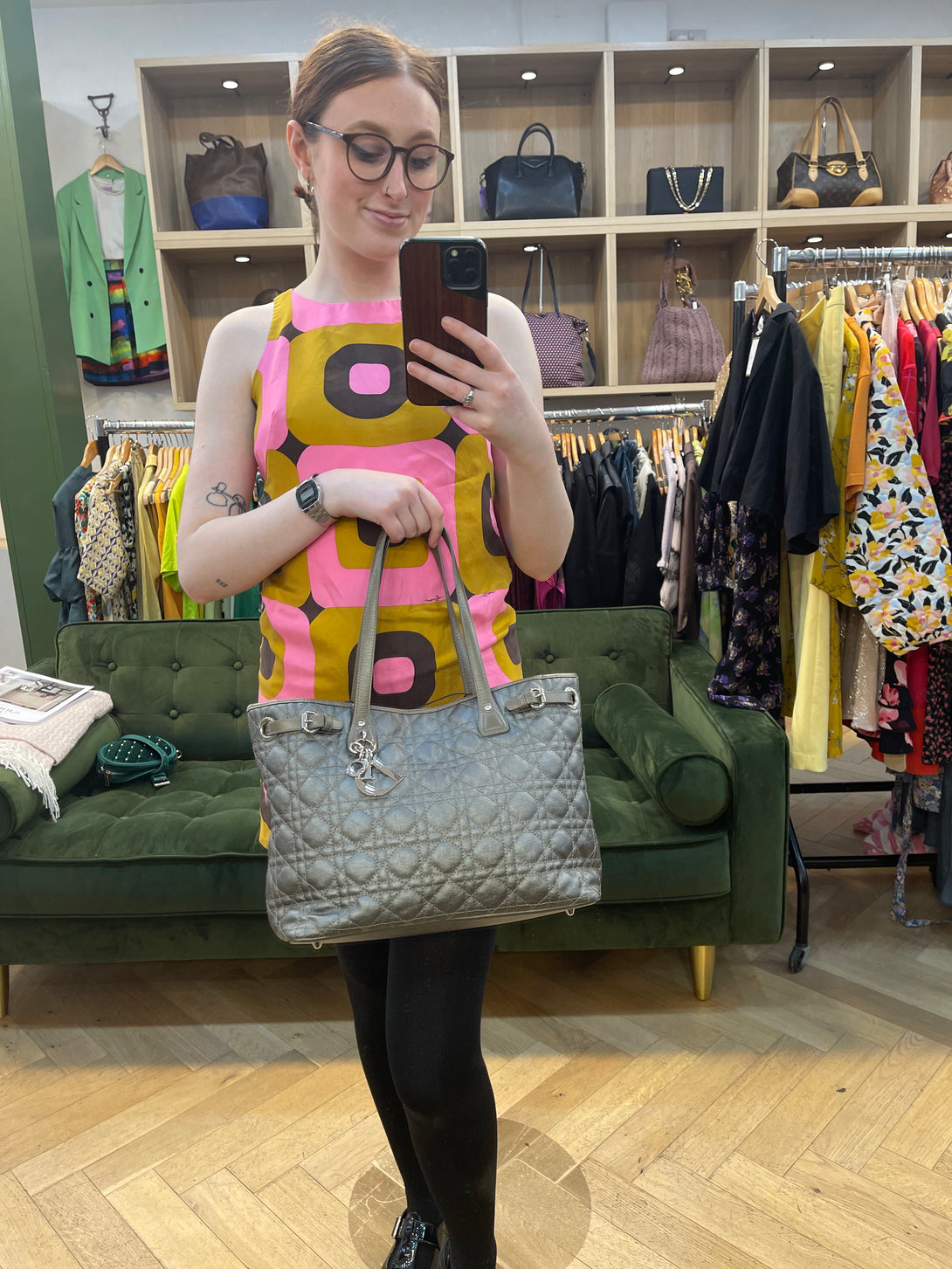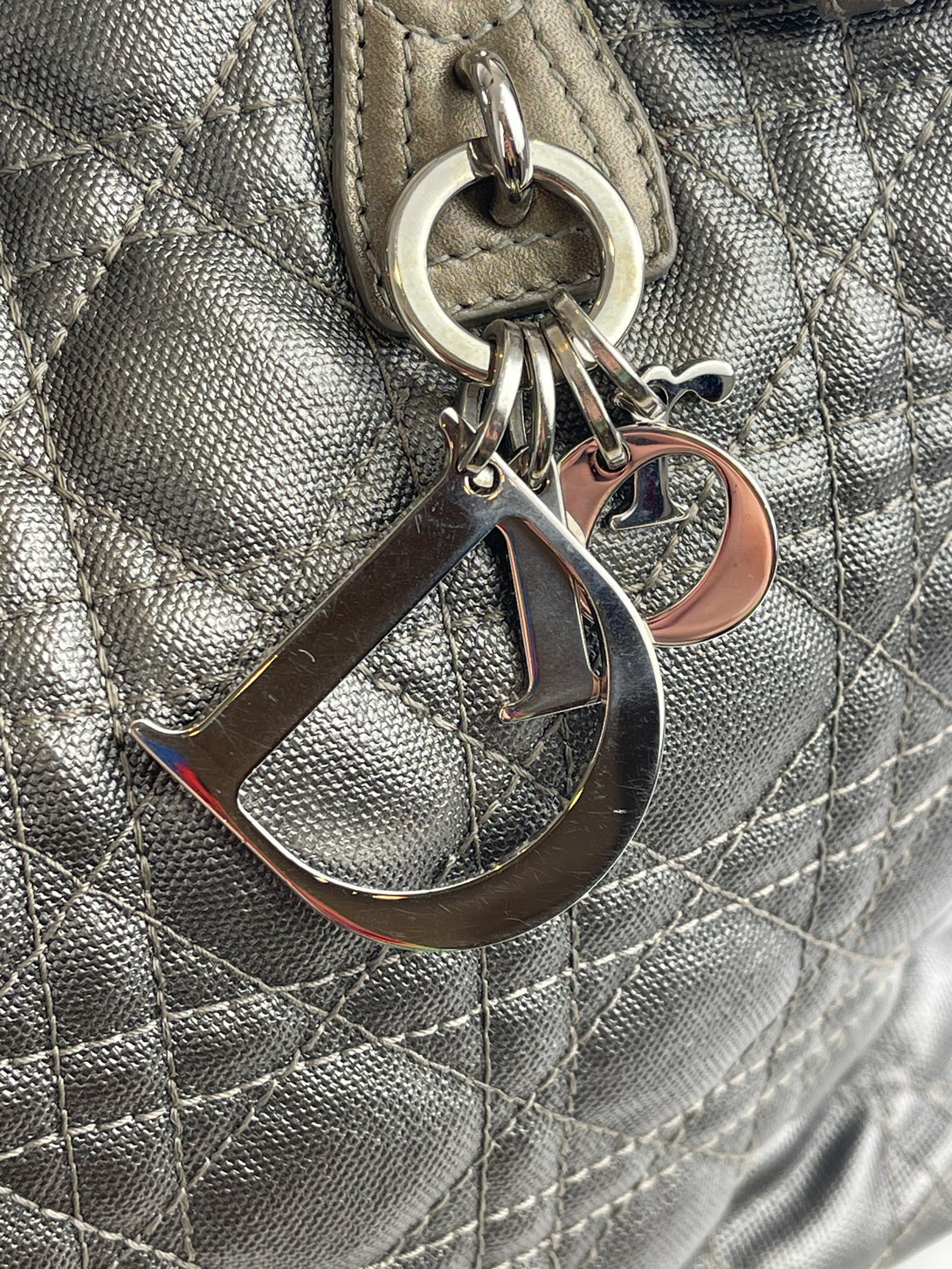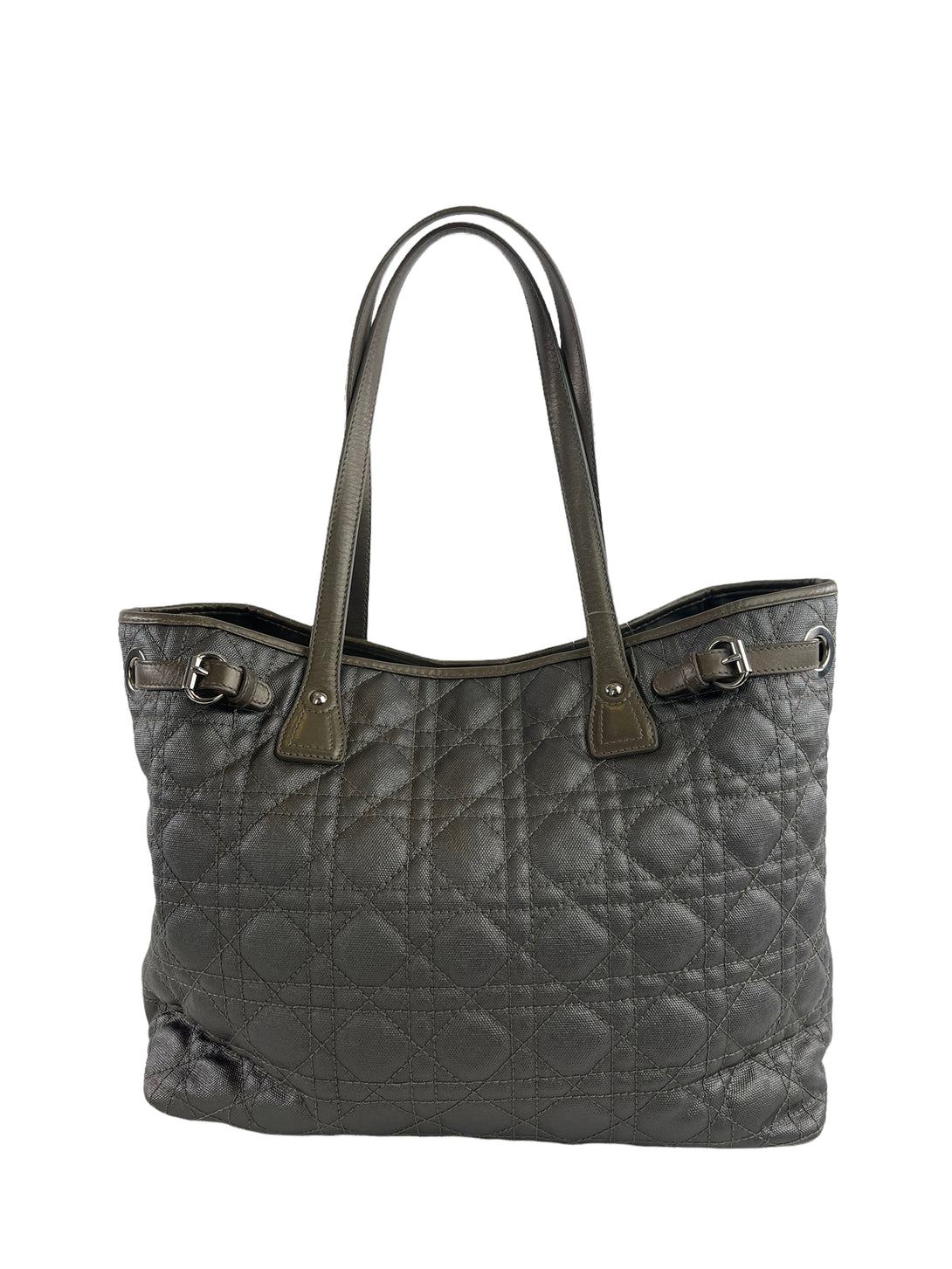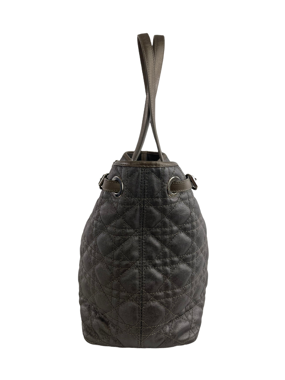 Christian Dior Grey Cannage Quilted Canvas Tote