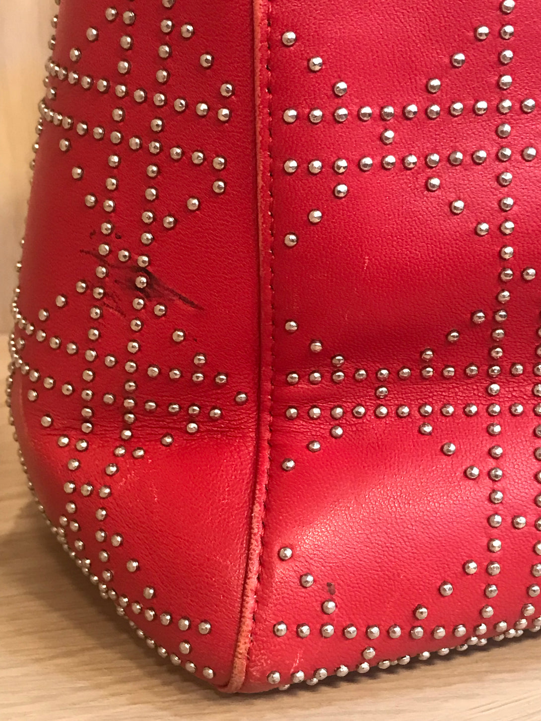 Dior Red Leather Studded ‘Lady Dior’ Bag