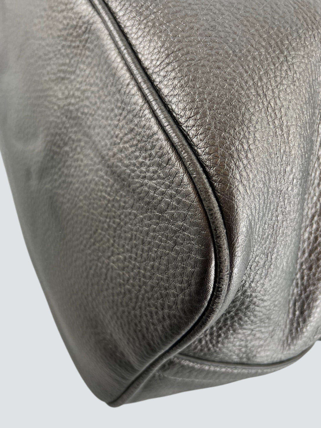 Good: Items show more prominent wear such as noticeable discoloration, stains and snags to fabric. May have worn corners and handles, tarnishing to hardware and creasing to leather. Pen or make up marks may be visible in the interior of the bag.