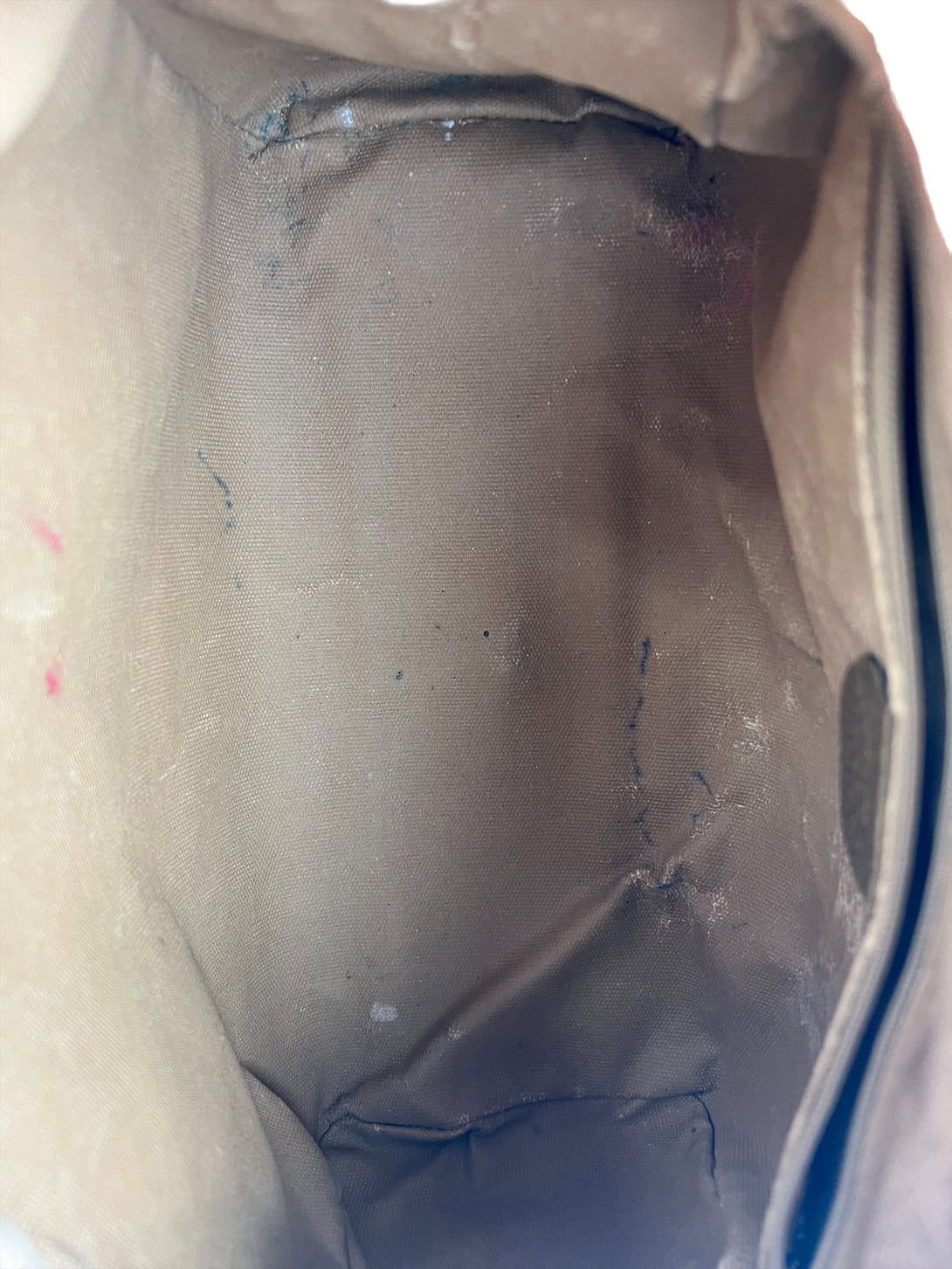 Good: Items show more prominent wear such as noticeable discoloration, stains and snags to fabric. May have worn corners and handles, tarnishing to hardware and creasing to leather. Pen or make up marks may be visible in the interior of the bag.
