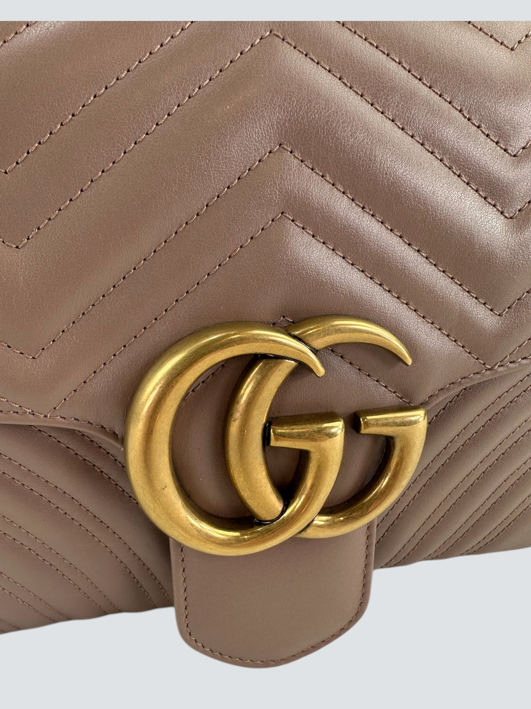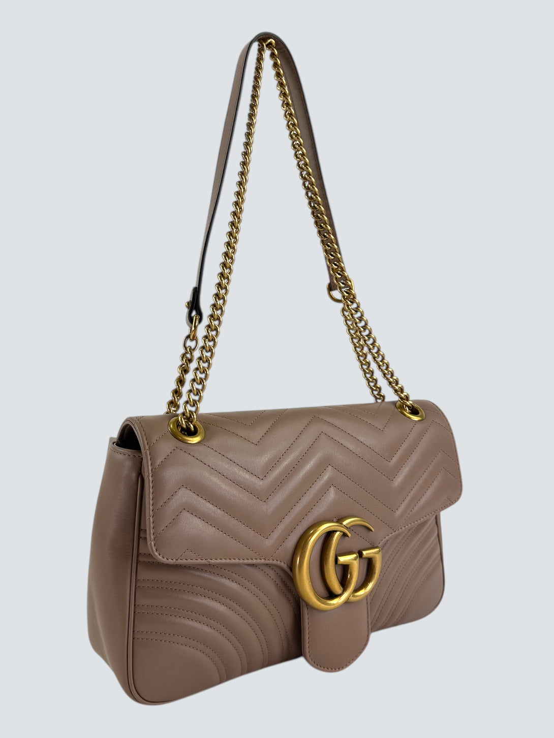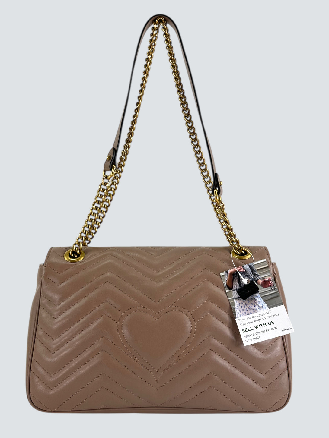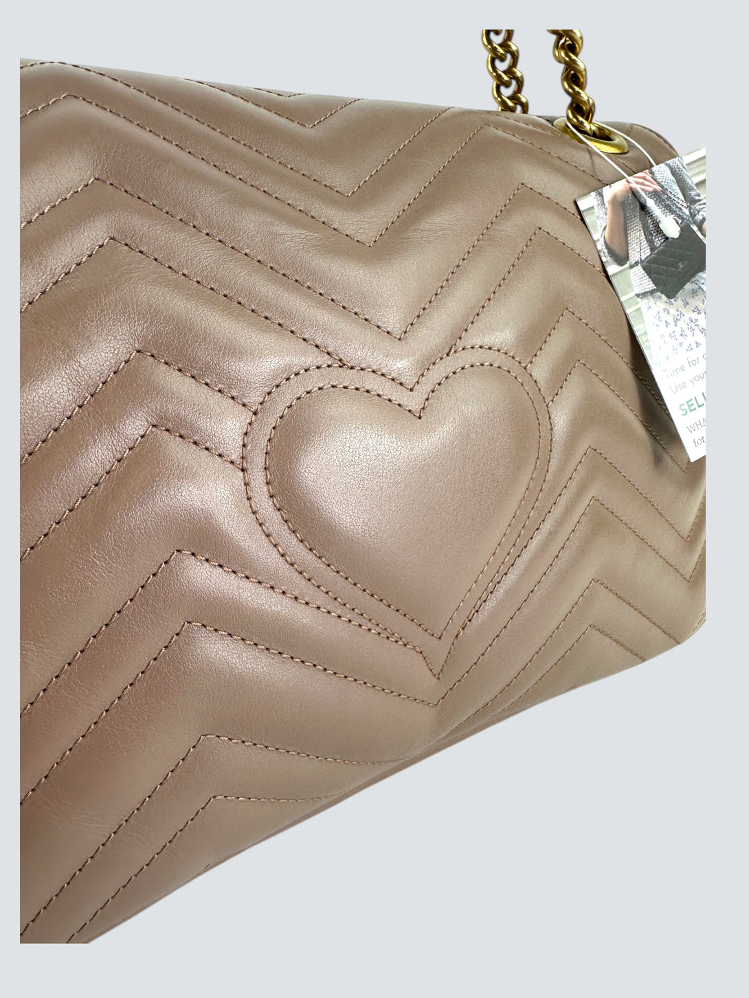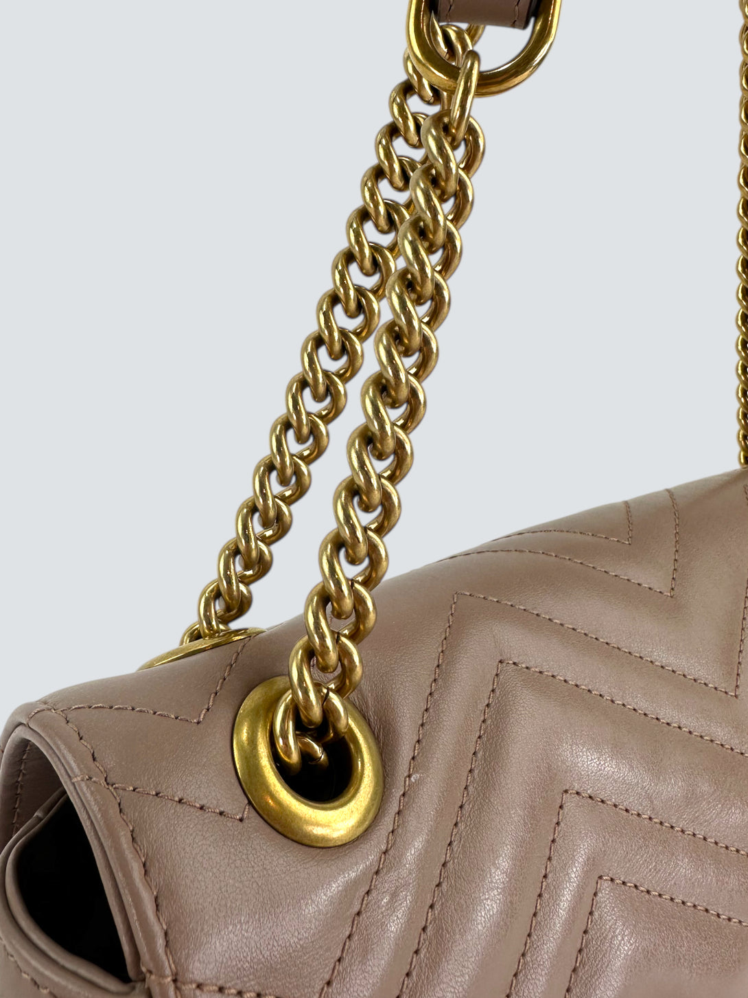 Gucci Large Taupe Leather GG Marmont Crossbody