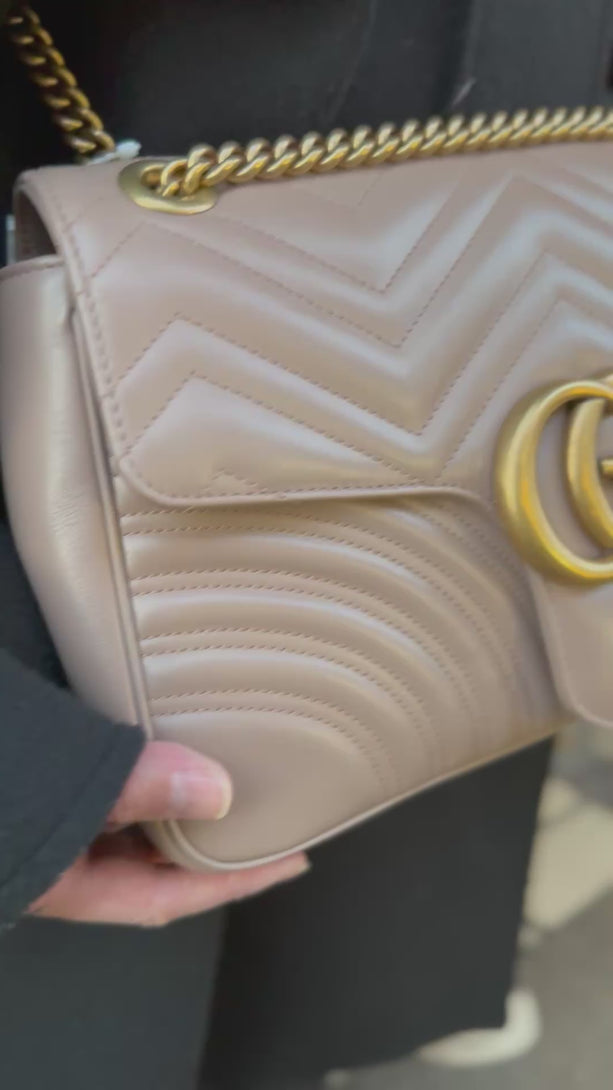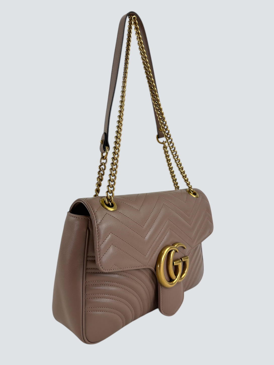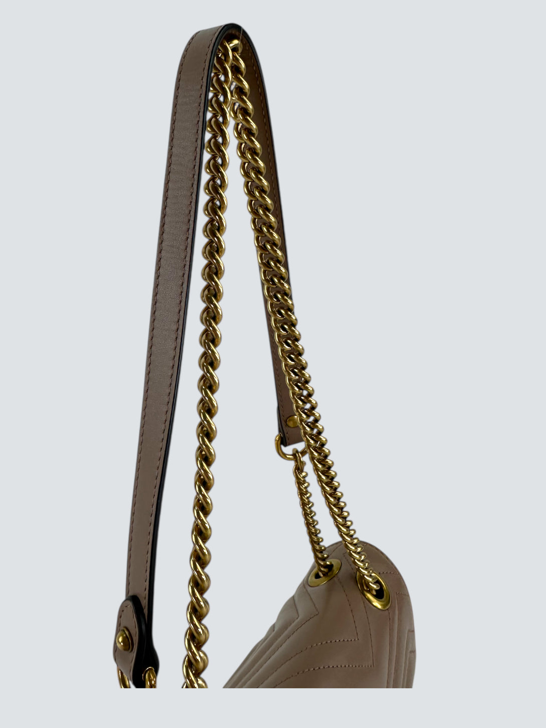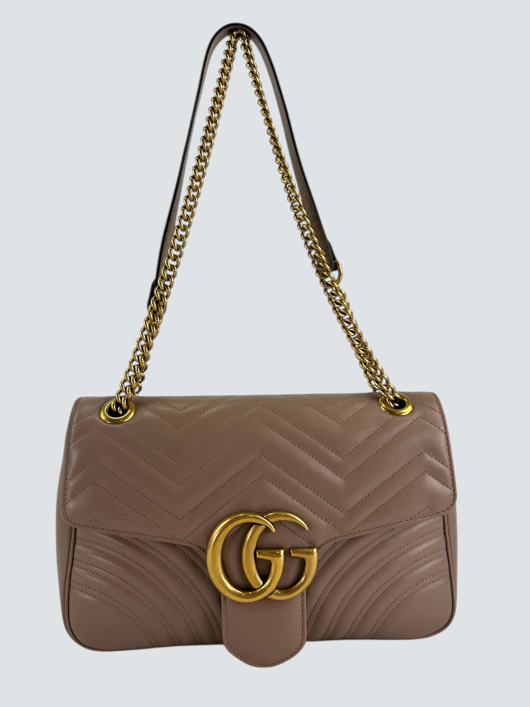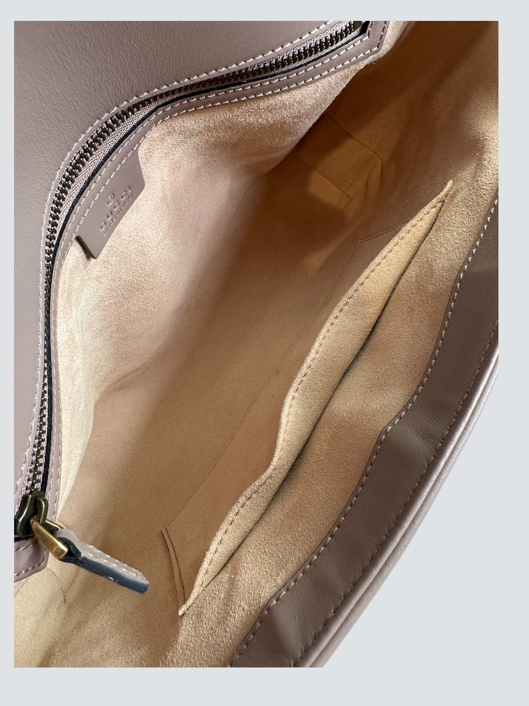 Gucci Large Taupe Leather GG Marmont Crossbody