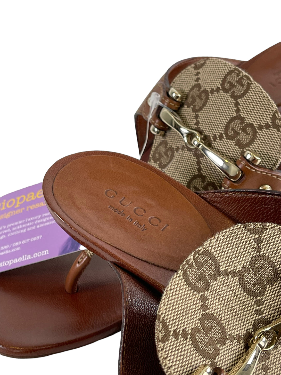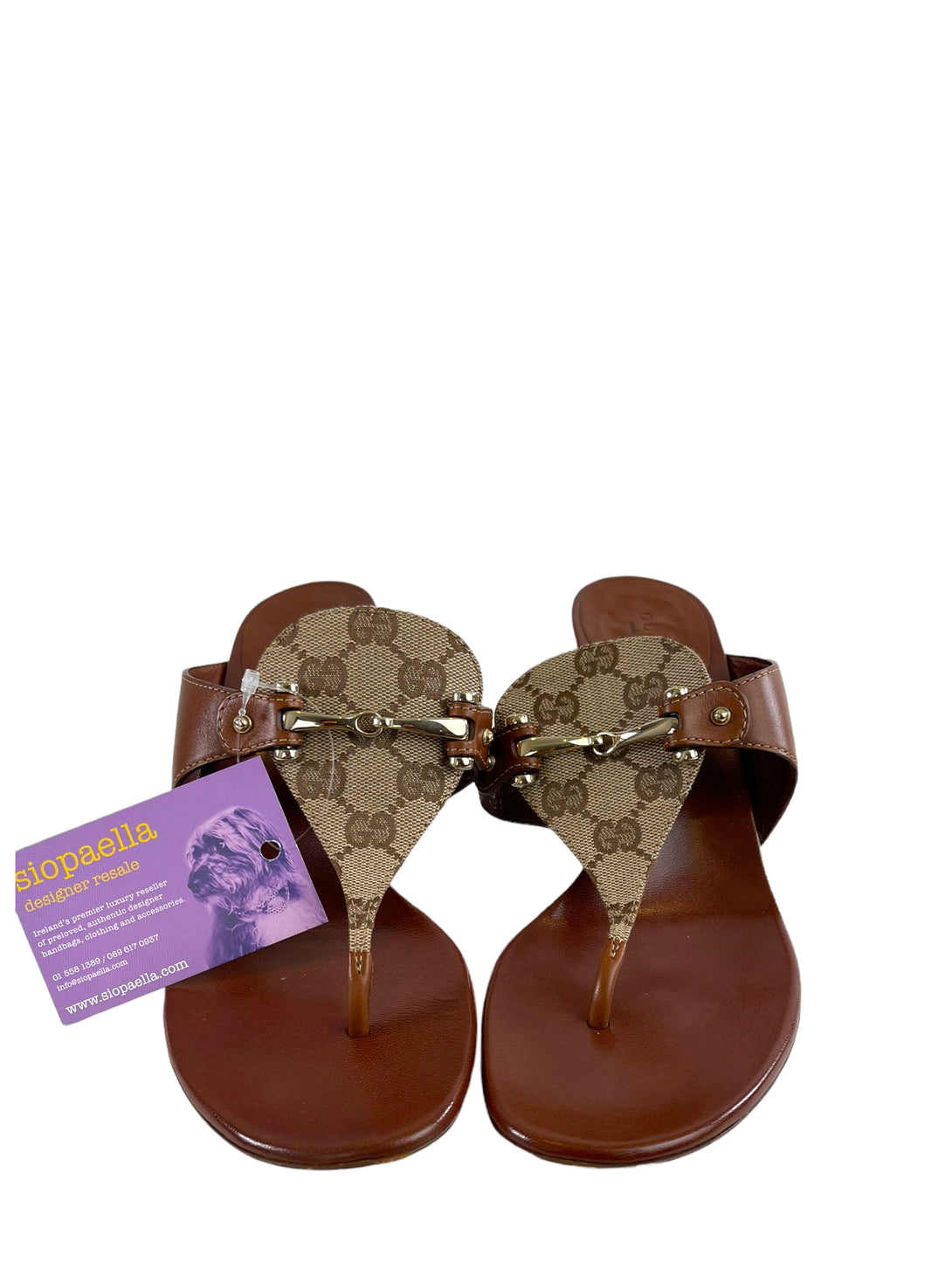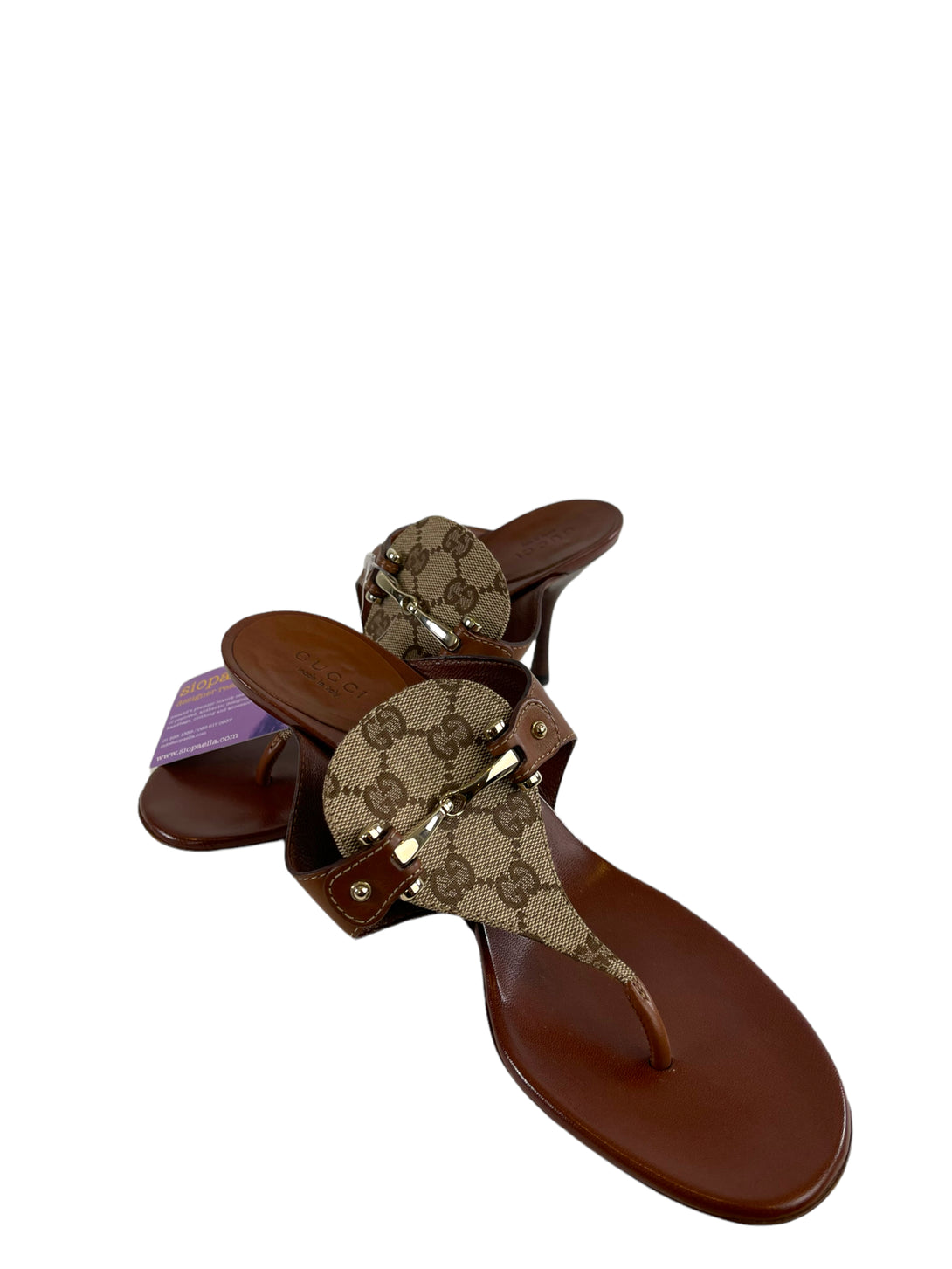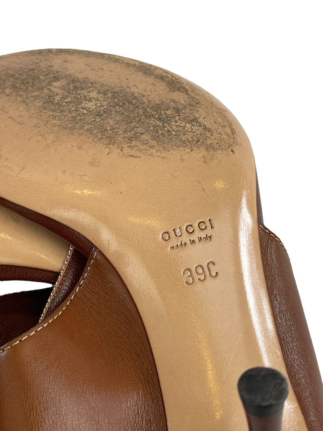 Gucci Tan Leather & Monogram Canvas GG Heels - UK 6 / EU 39