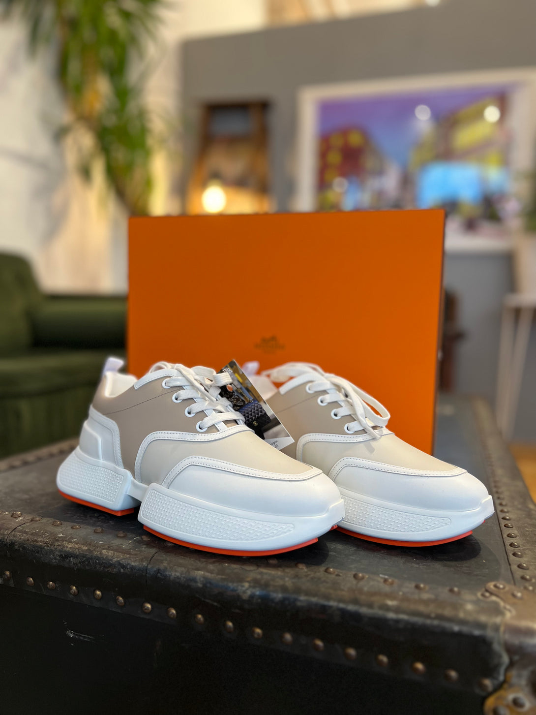 Hermes Cream & White calfskin and Epsom calfskin GIGA Sneakers - UK 4
