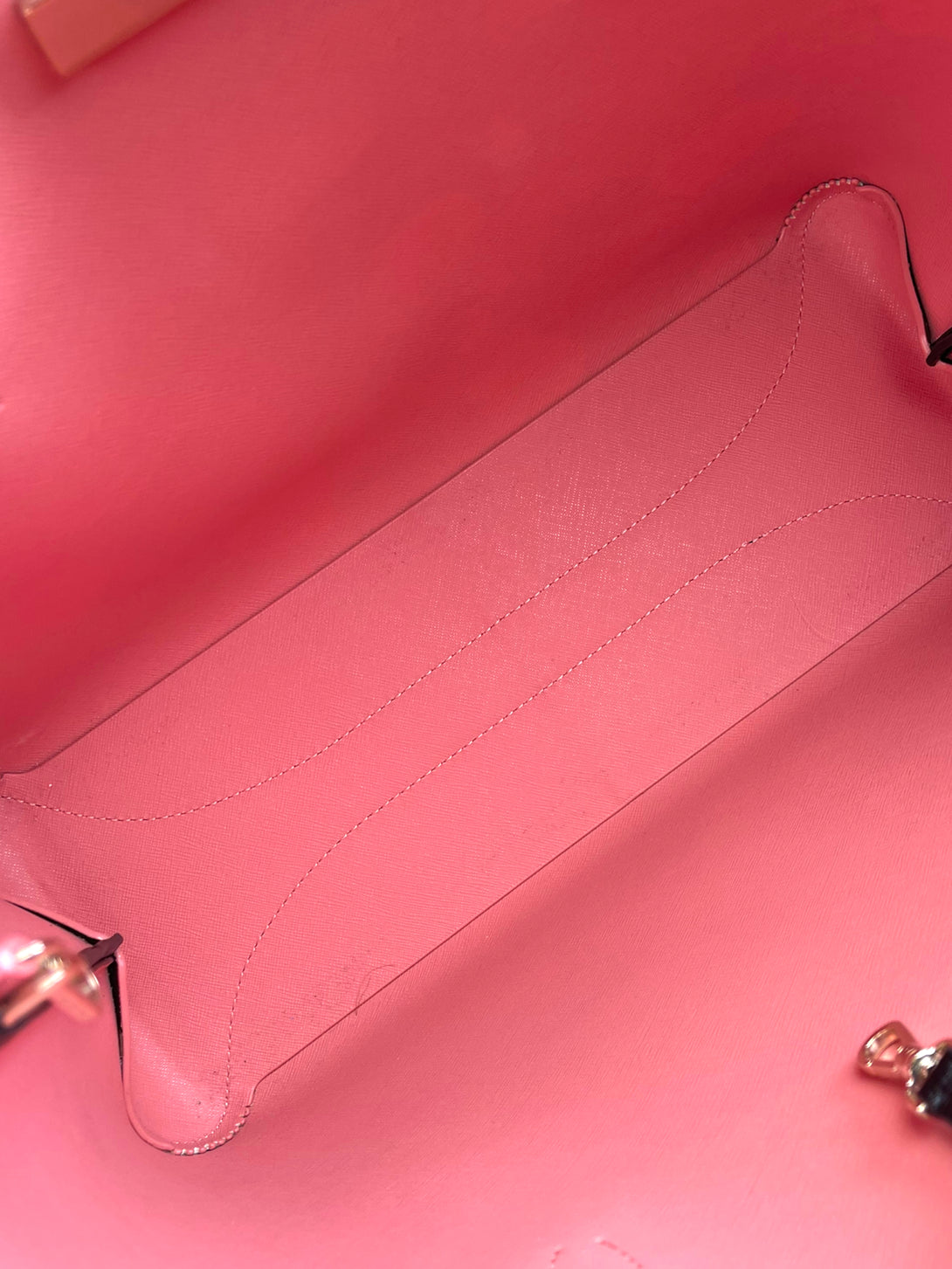 Good: Items show more prominent wear such as noticeable discoloration, stains and snags to fabric. May have worn corners and handles, tarnishing to hardware and creasing to leather. Pen or make up marks may be visible in the interior of the bag.