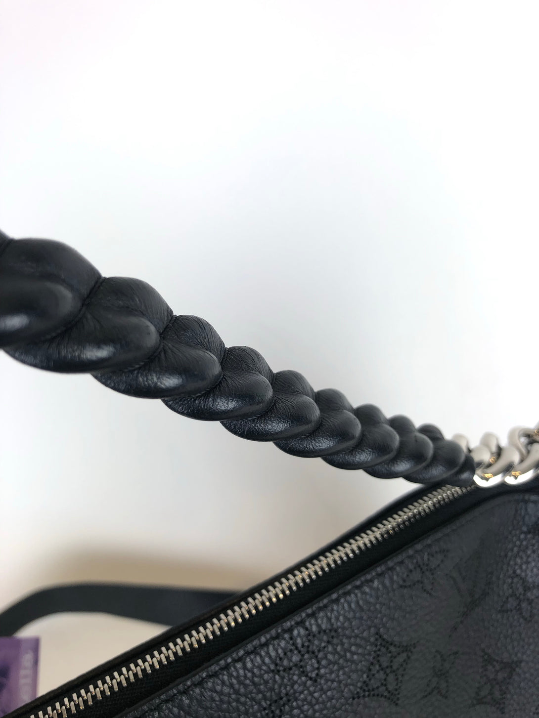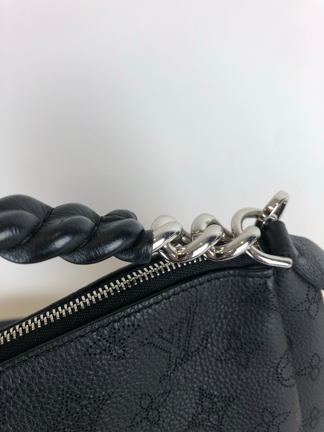 • Top, leather & chain entwined carry handle