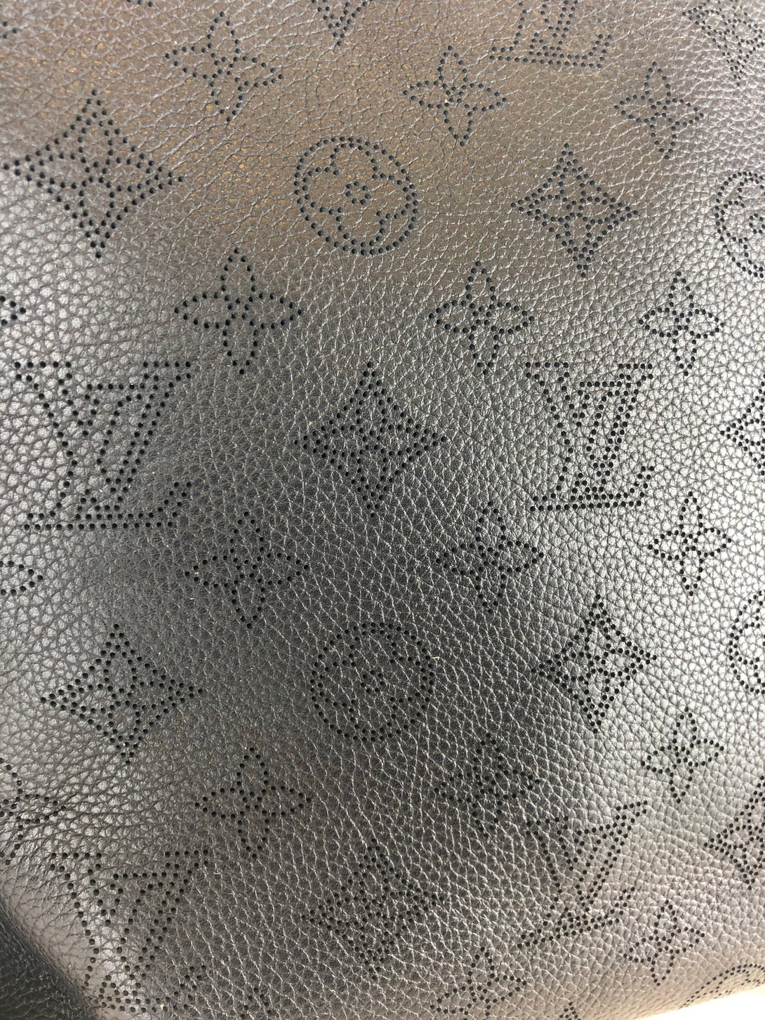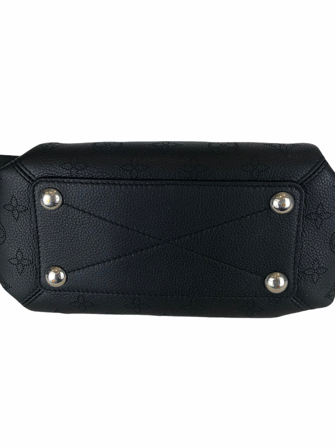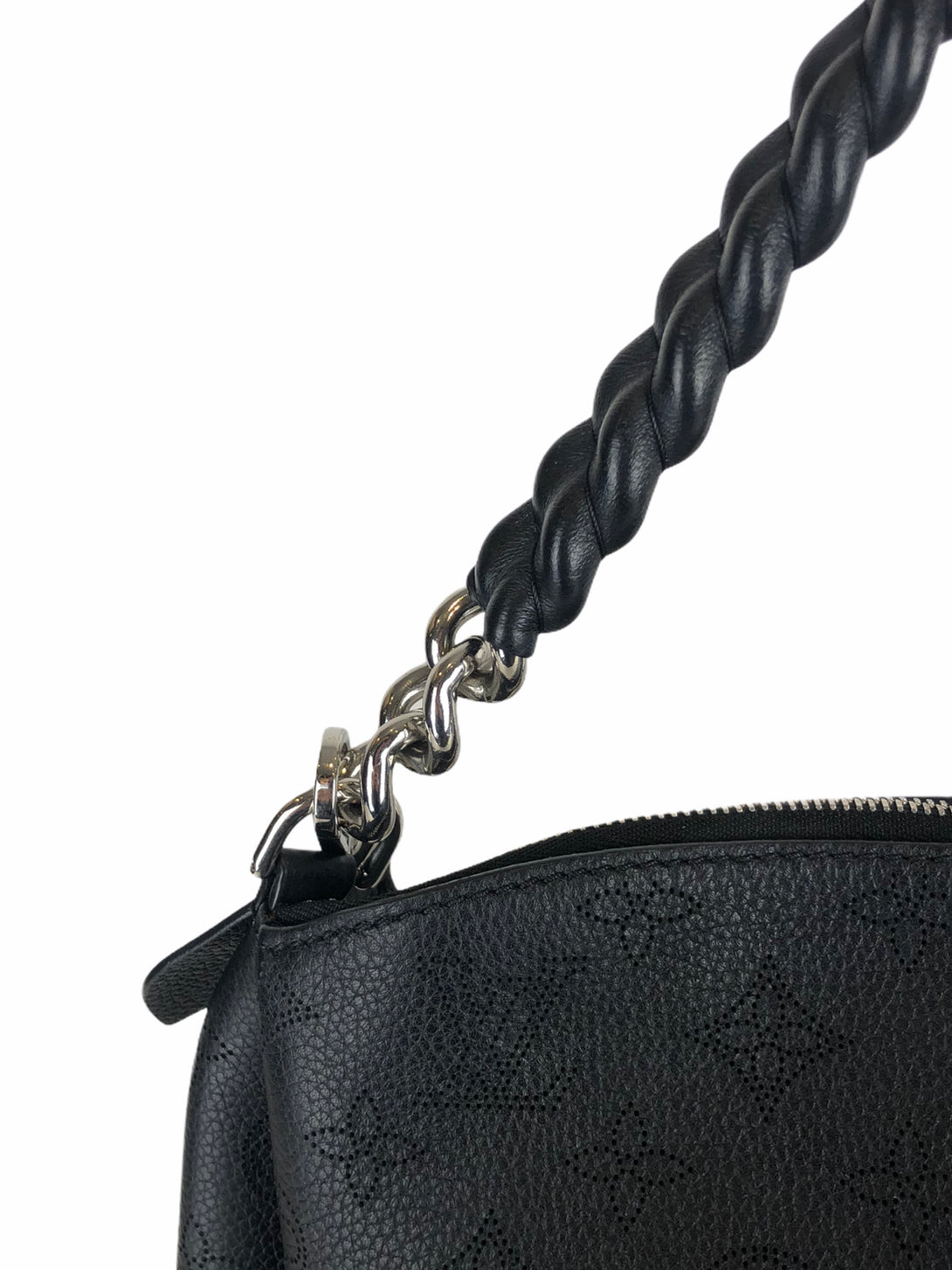 • Black, perforated monogram calf leather shoulder bag with polished silvertone hardware