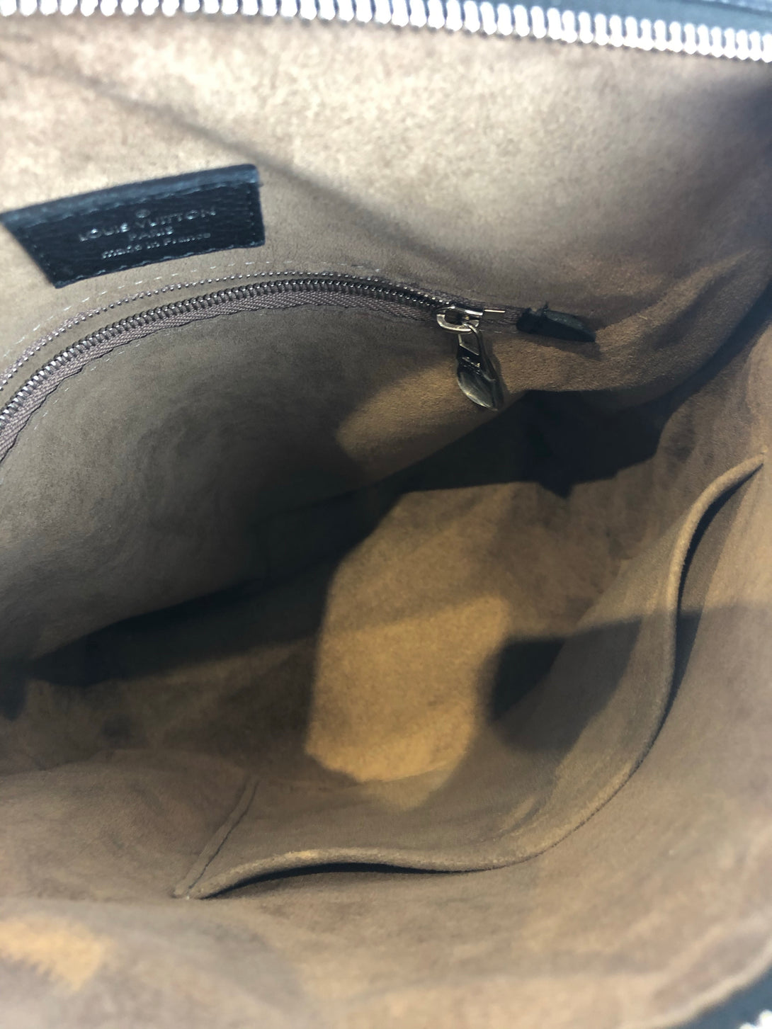 • Brown, alcantara fabric lined interior with zipped pocket