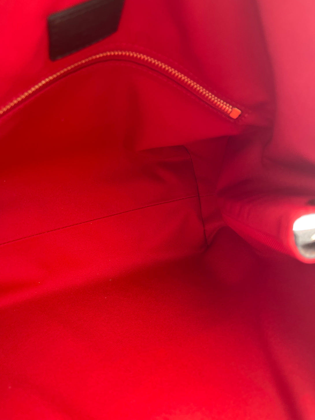 Good: Items show more prominent wear such as noticeable discoloration, stains and snags to fabric. May have worn corners and handles, tarnishing to hardware and creasing to leather. Pen or make up marks may be visible in the interior of the bag.