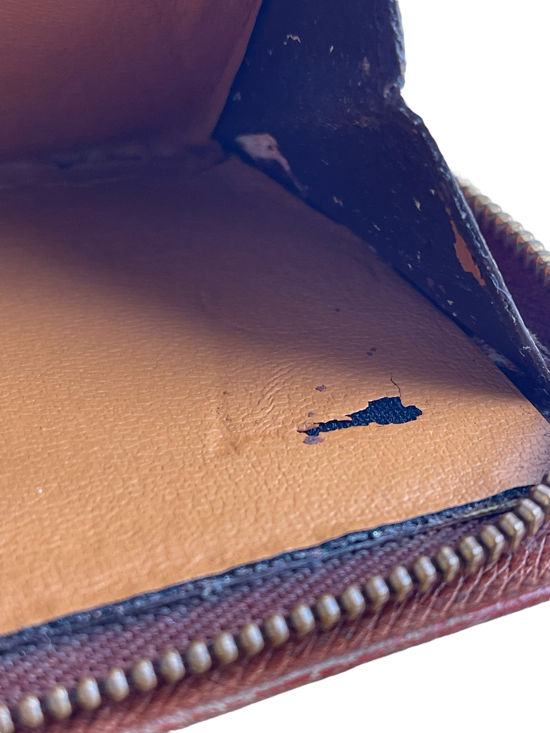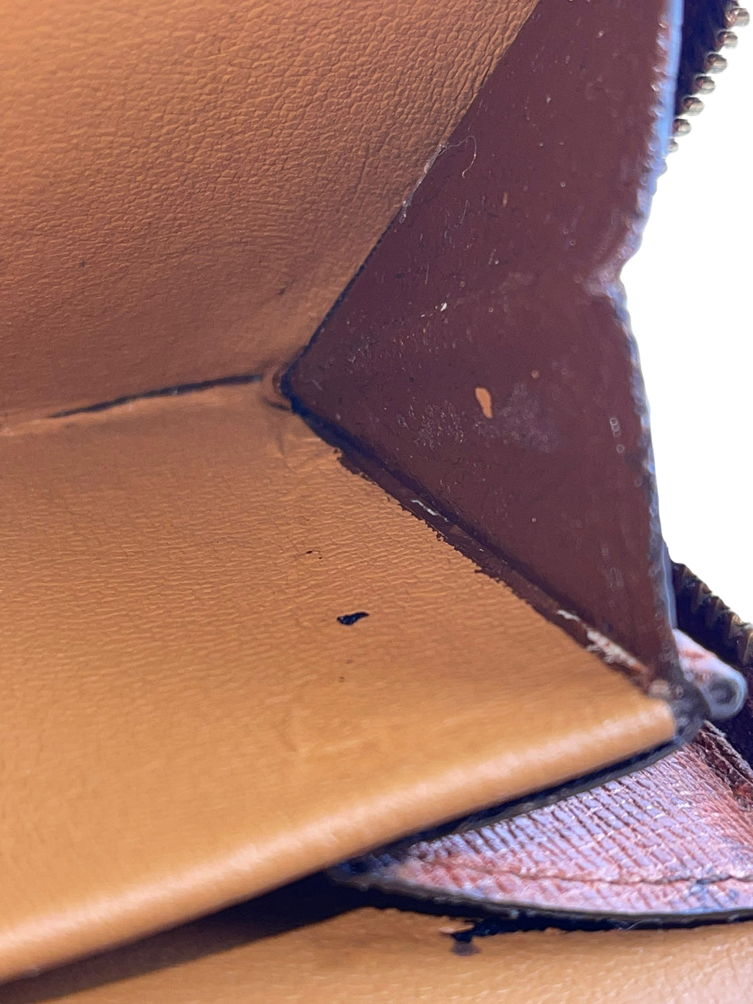 Fair: Very prominent wear, may have holes on corners, severe scuffs, piping of bag showing and pen marks to exterior. Interior may have pen or make up marks.