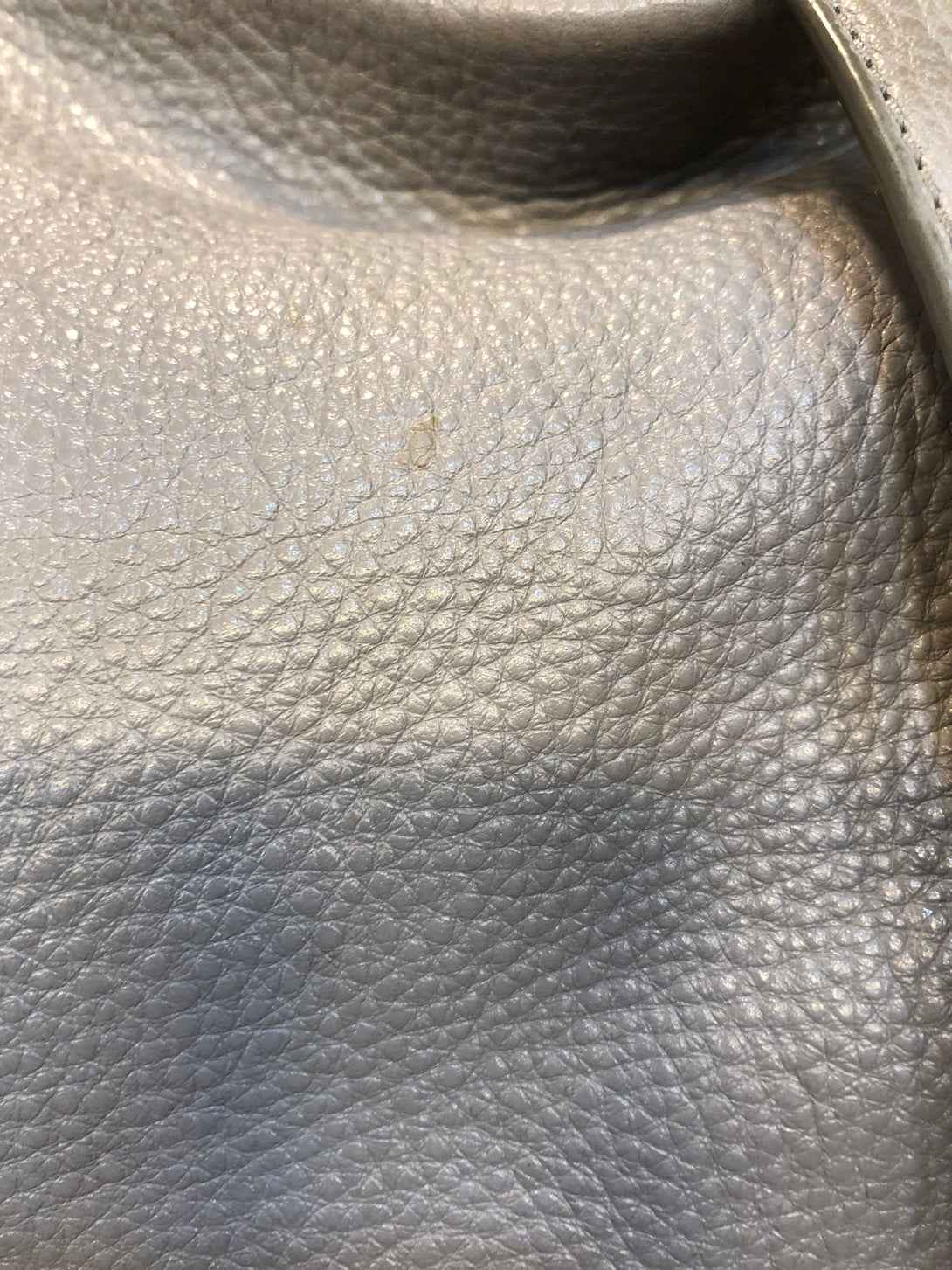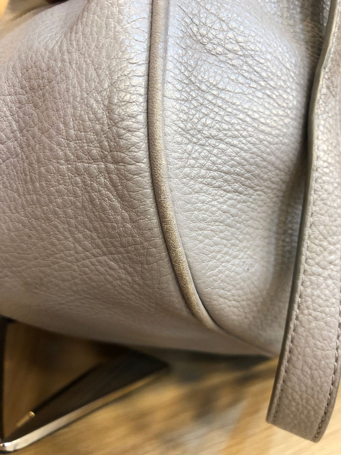 Good: Items show more prominent wear such as noticeable discoloration, stains and snags to fabric. May have worn corners and handles, tarnishing to hardware and creasing to leather. Pen or make up marks may be visible in the interior of the bag.