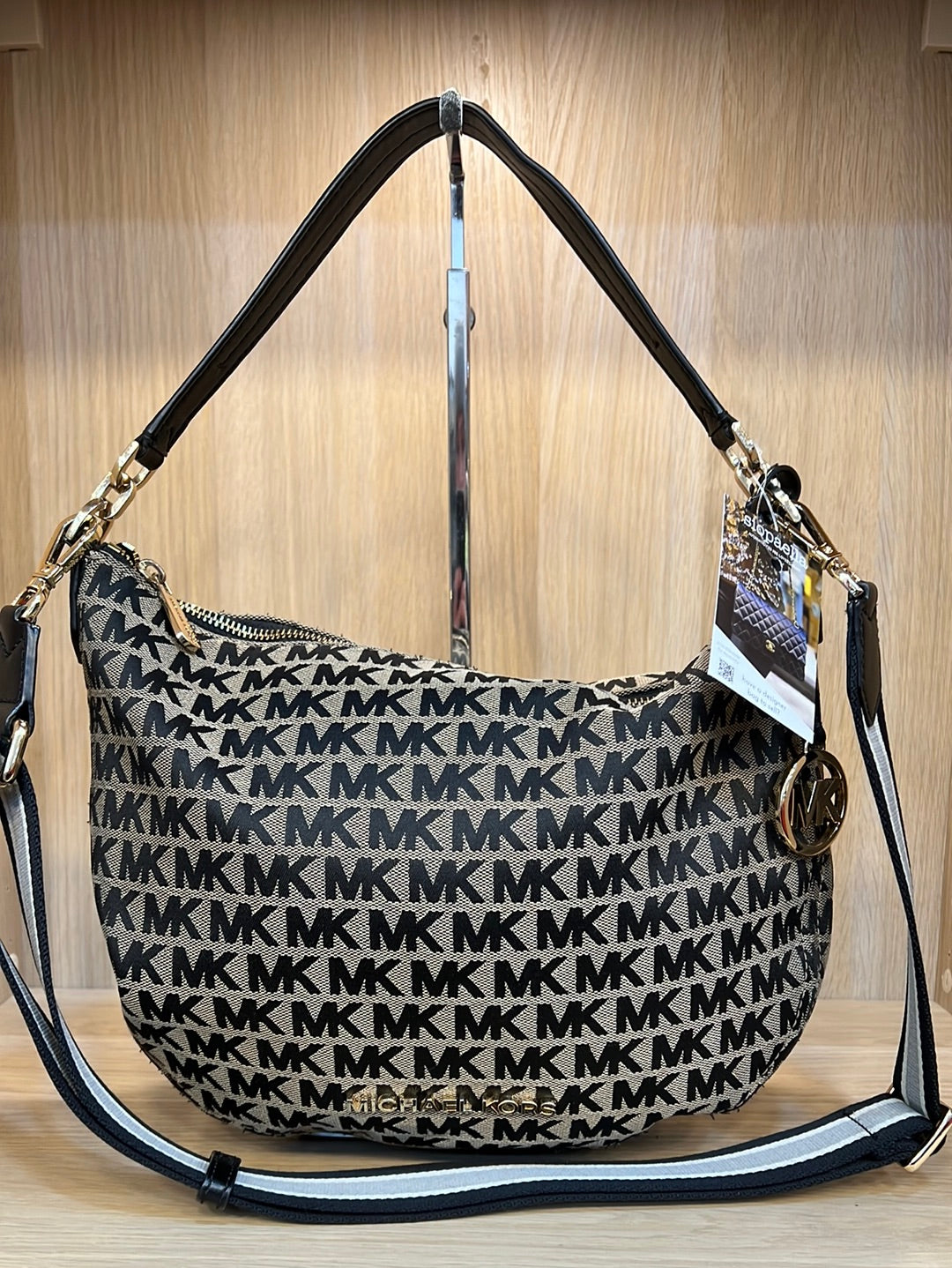 Michael Kors Black & Tan Monogram Canvas Crossbody As Seen on Instagram
