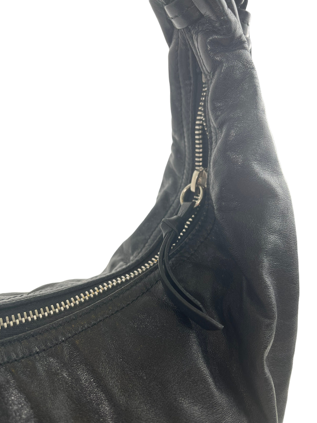 Good: Items show more prominent wear such as noticeable discoloration, stains and snags to fabric. May have worn corners and handles, tarnishing to hardware and creasing to leather. Pen or make up marks may be visible in the interior of the bag.
