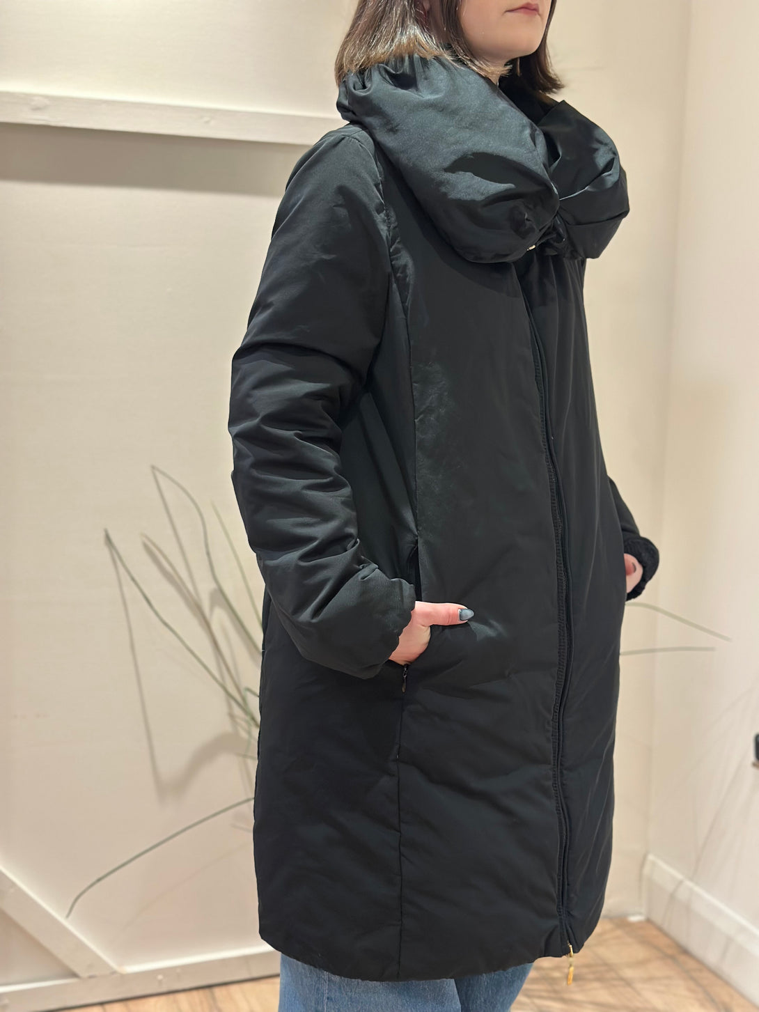 Moncler Size 2 Black Long Coat