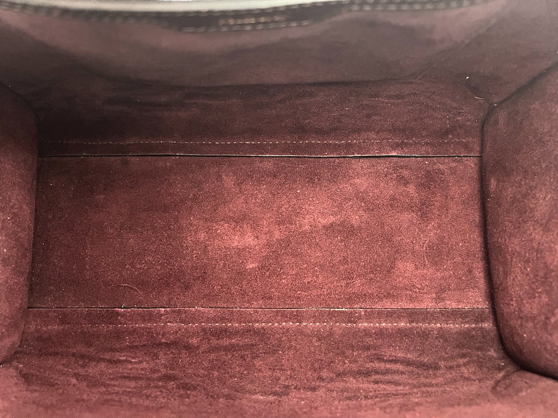 Good: Items show more prominent wear such as noticeable discoloration, stains and snags to fabric. May have worn corners and handles, tarnishing to hardware and creasing to leather. Pen or make up marks may be visible in the interior of the bag.