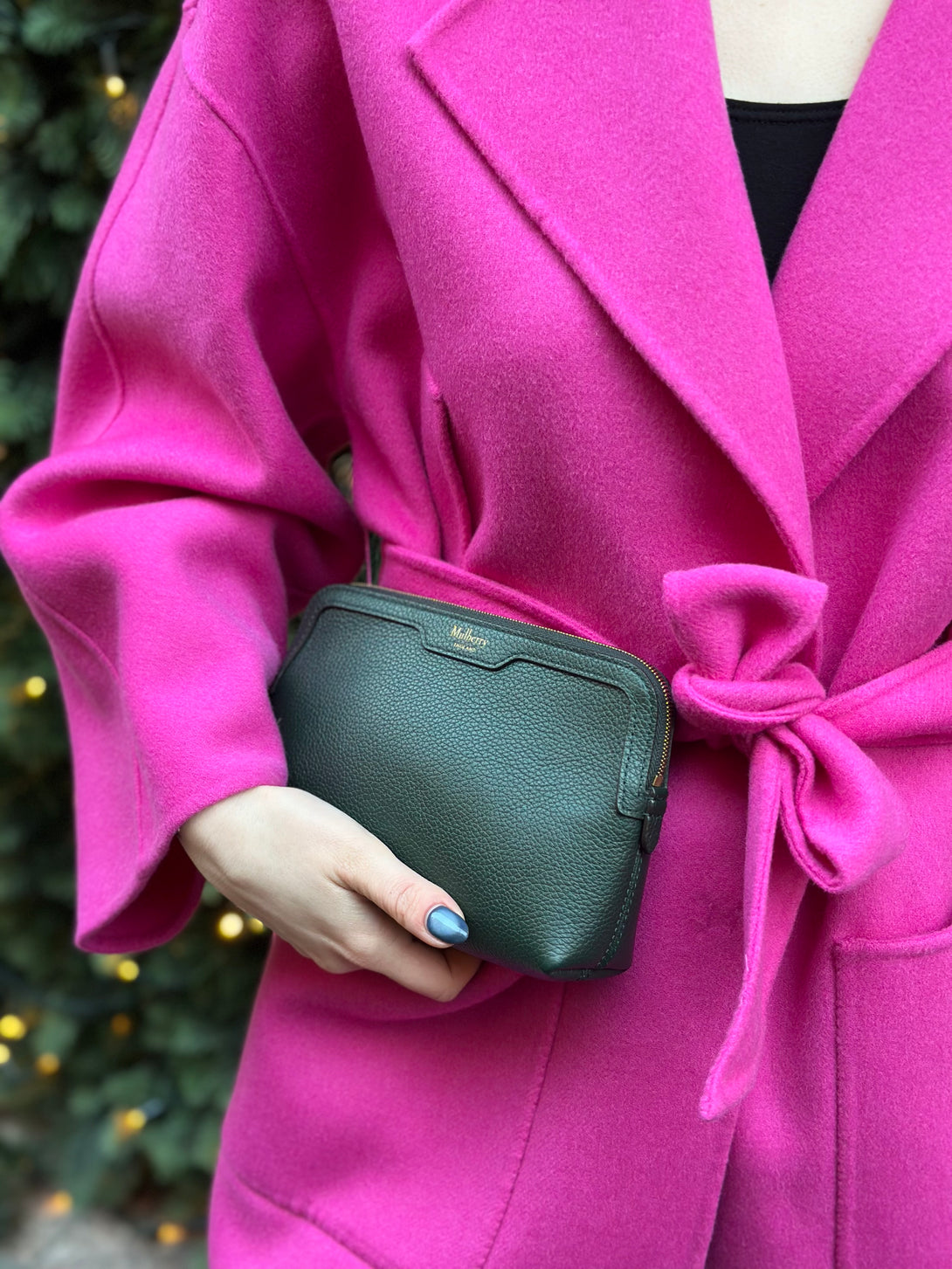 Mulberry Green Leather Cosmetic Pouch