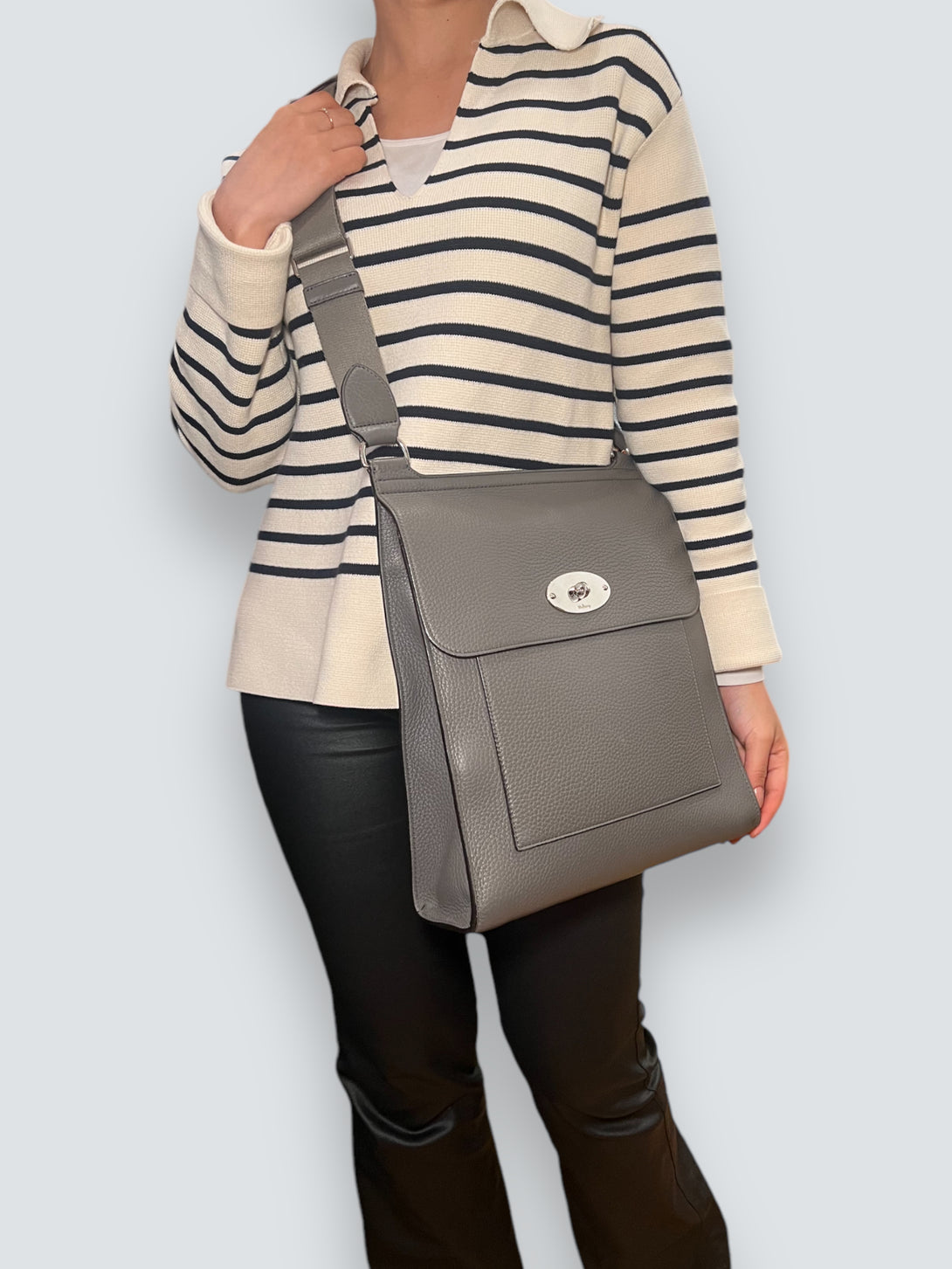 Mulberry Light Grey Leather “Antony” Satchel