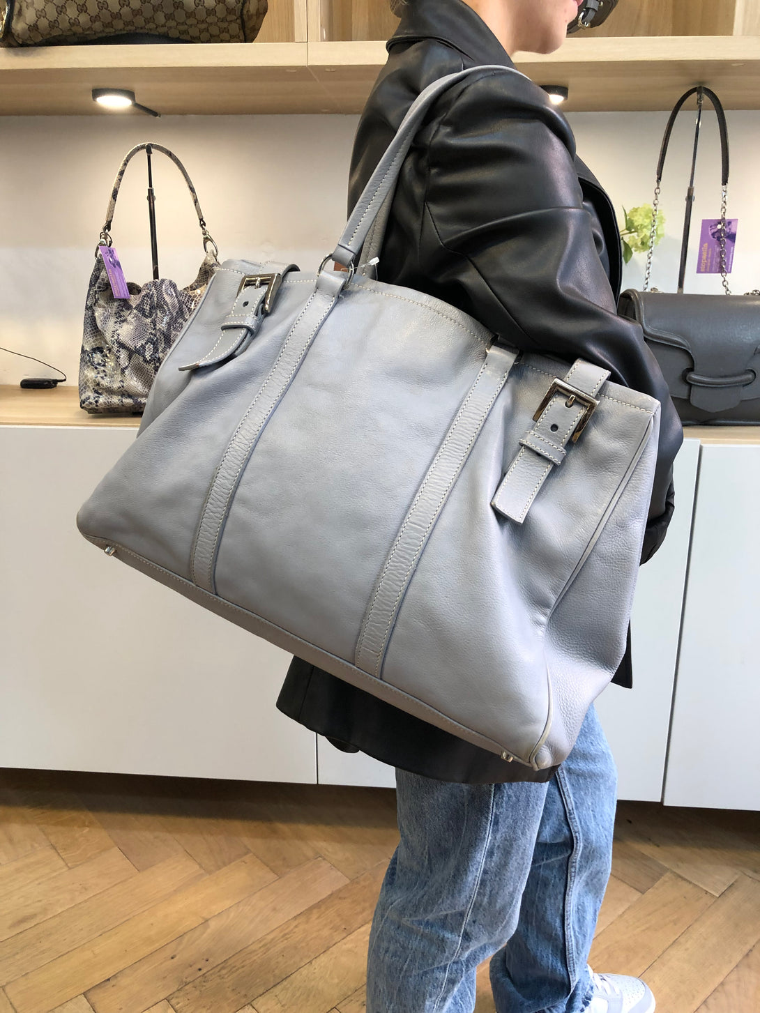 Prada Blue/Grey Leather Tote