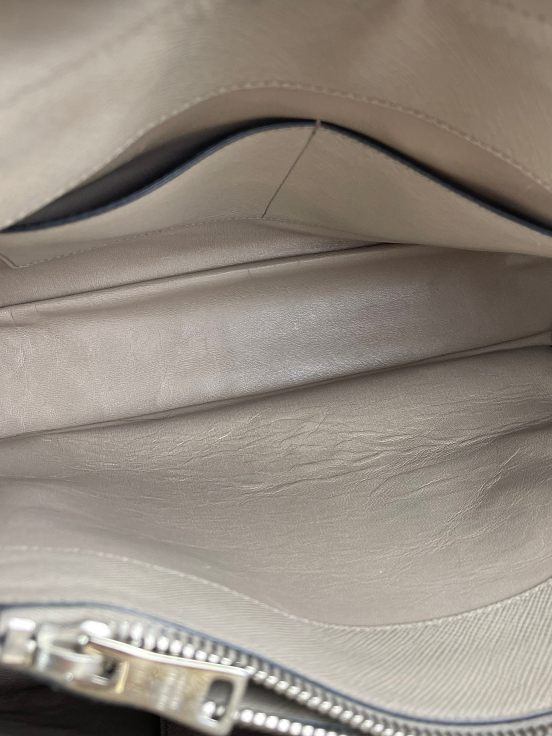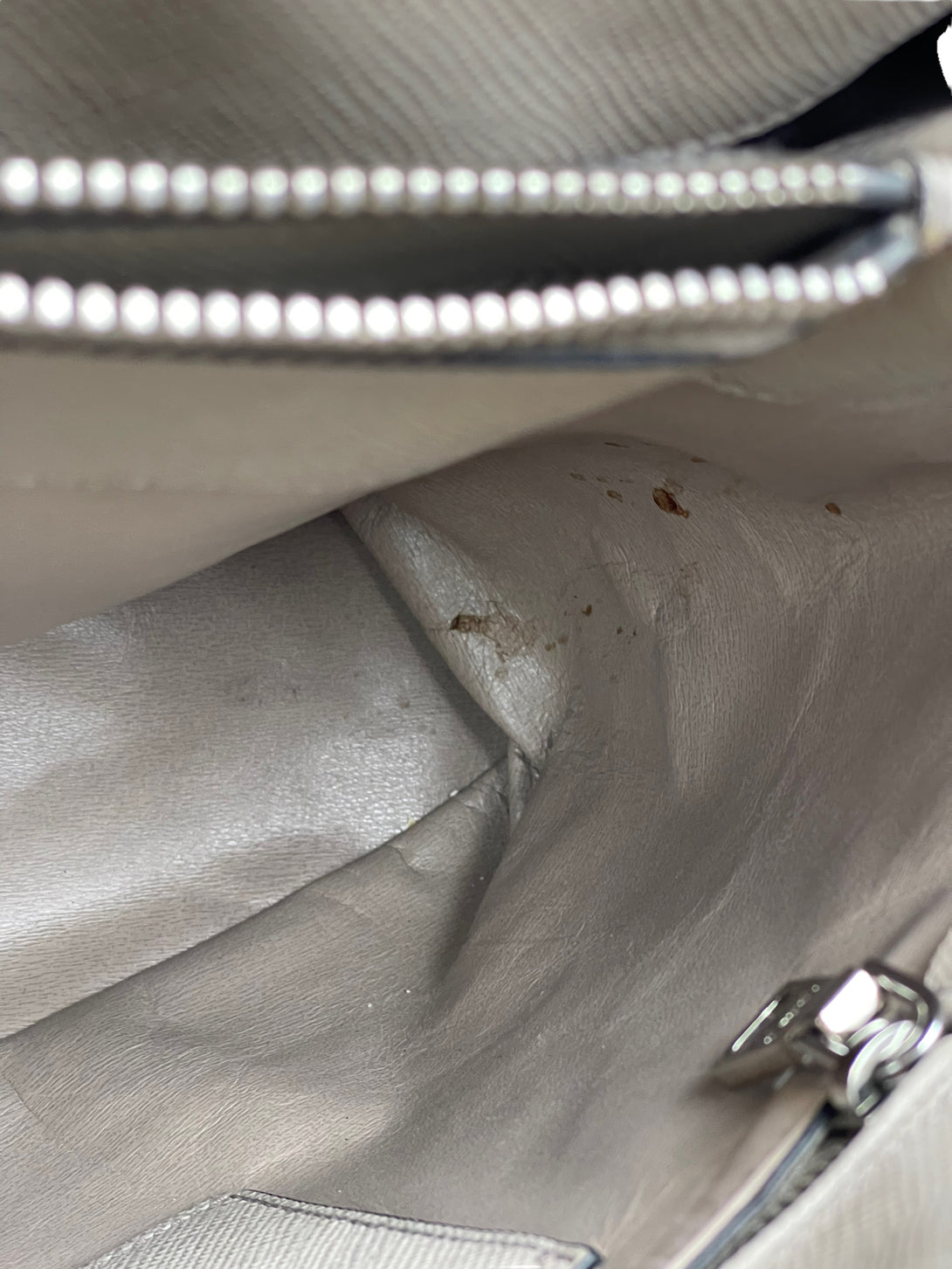 Good: Items show more prominent wear such as noticeable discoloration, stains and snags to fabric. May have worn corners and handles, tarnishing to hardware and creasing to leather. Pen or make up marks may be visible in the interior of the bag.