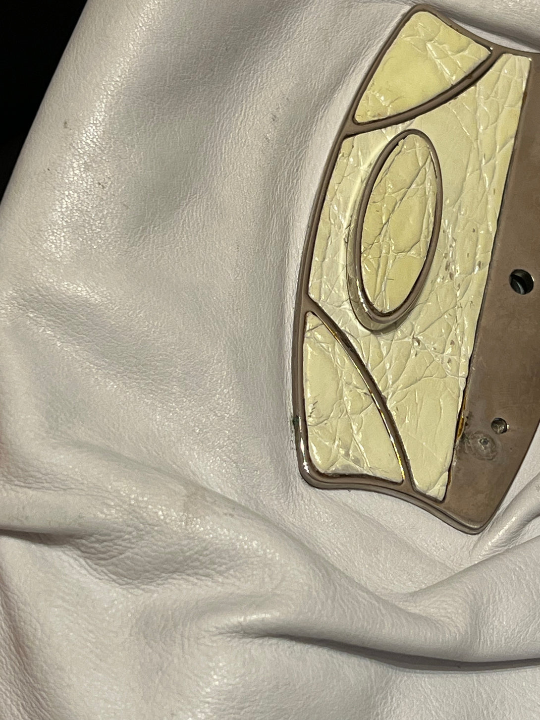 Good: Items show more prominent wear such as noticeable discoloration, stains and snags to fabric. May have worn corners and handles, tarnishing to hardware and creasing to leather. Pen or make up marks may be visible in the interior of the bag.