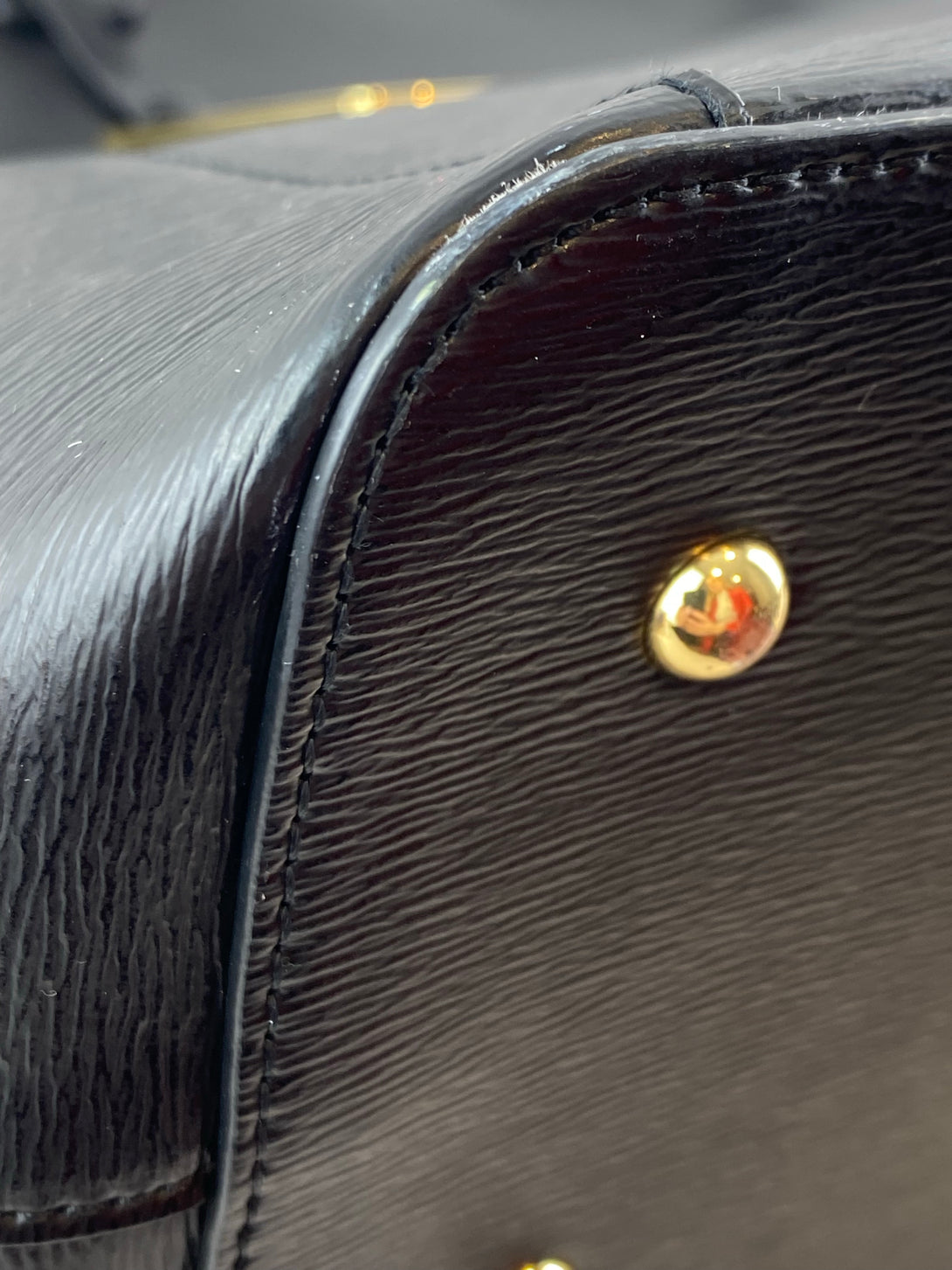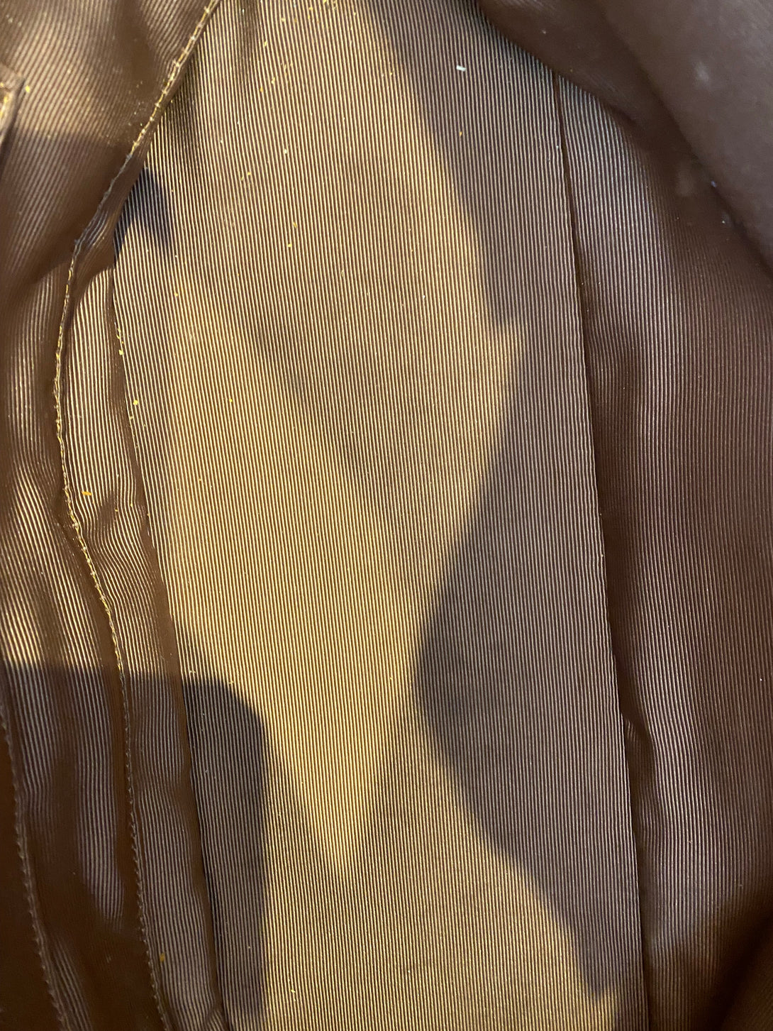 Good: Items show more prominent wear such as noticeable discoloration, stains and snags to fabric. May have worn corners and handles, tarnishing to hardware and creasing to leather. Pen or make up marks may be visible in the interior of the bag.
