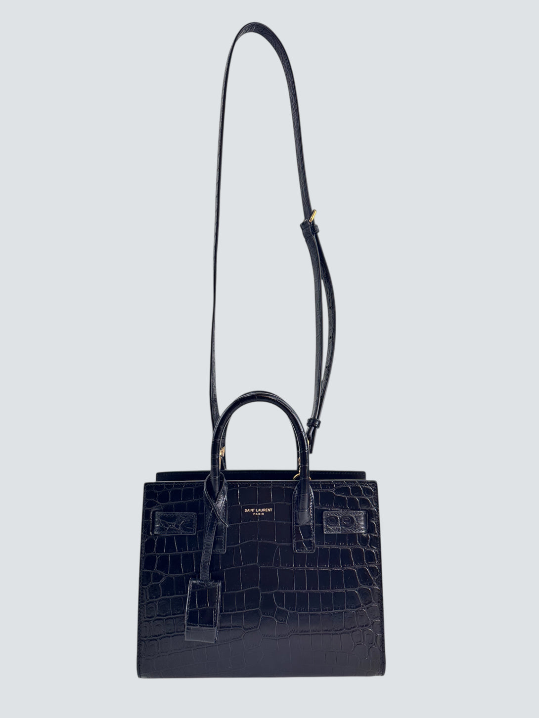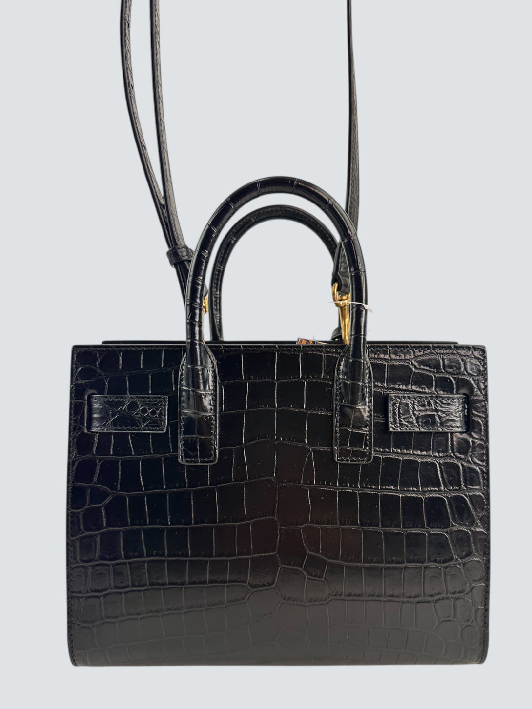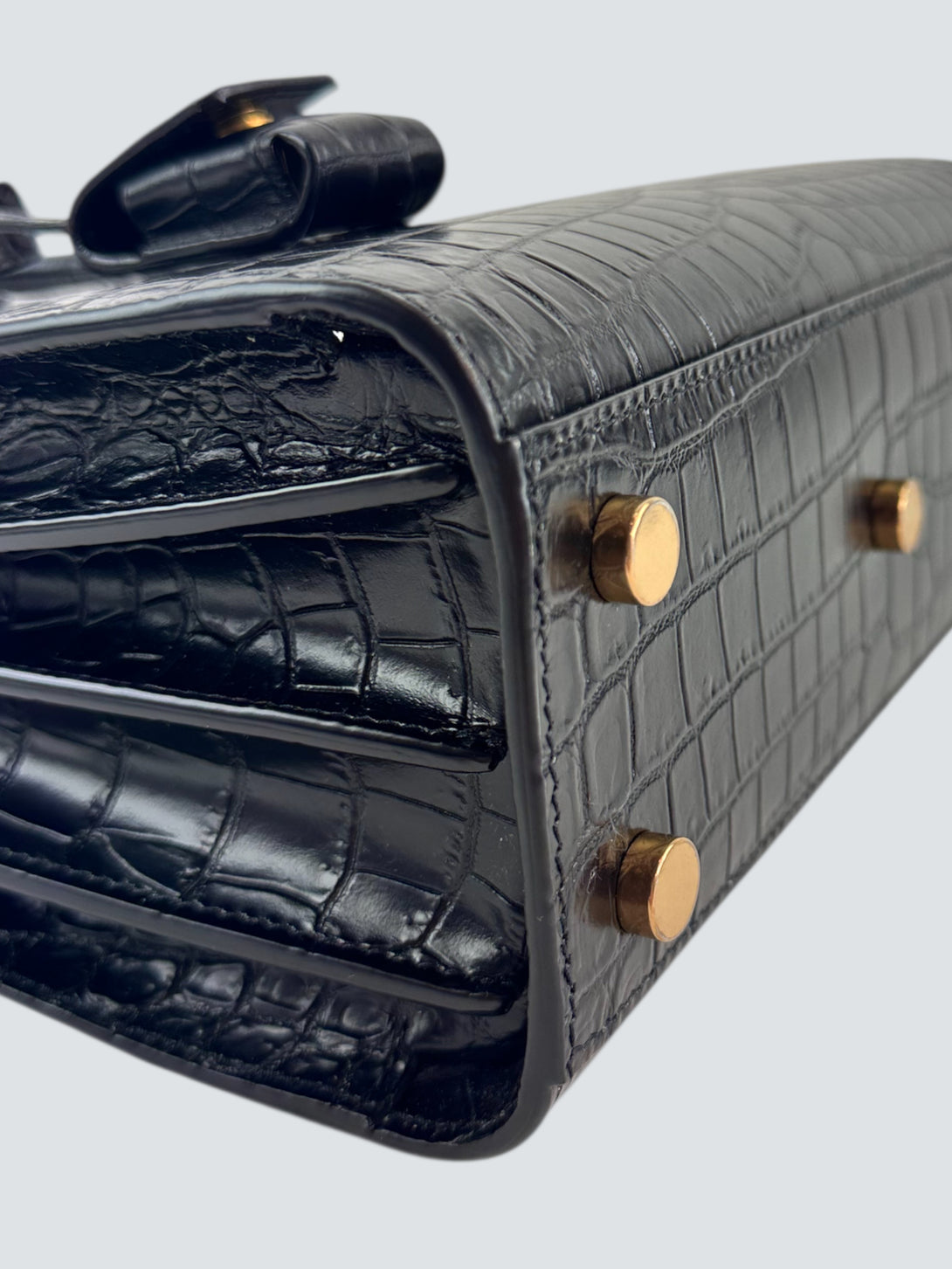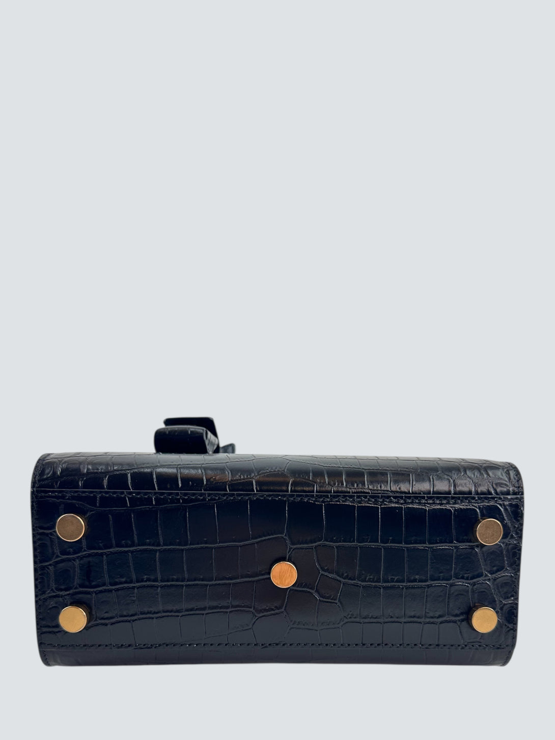 Saint Laurent Small Black Croc Effect Leather Sac du Jour