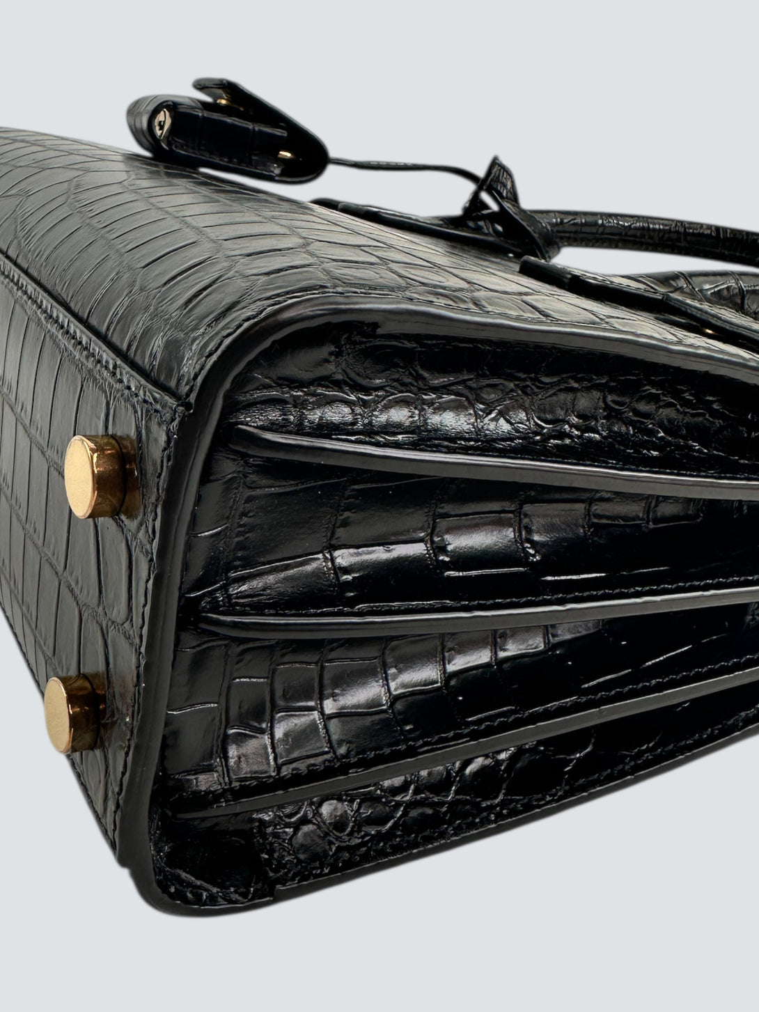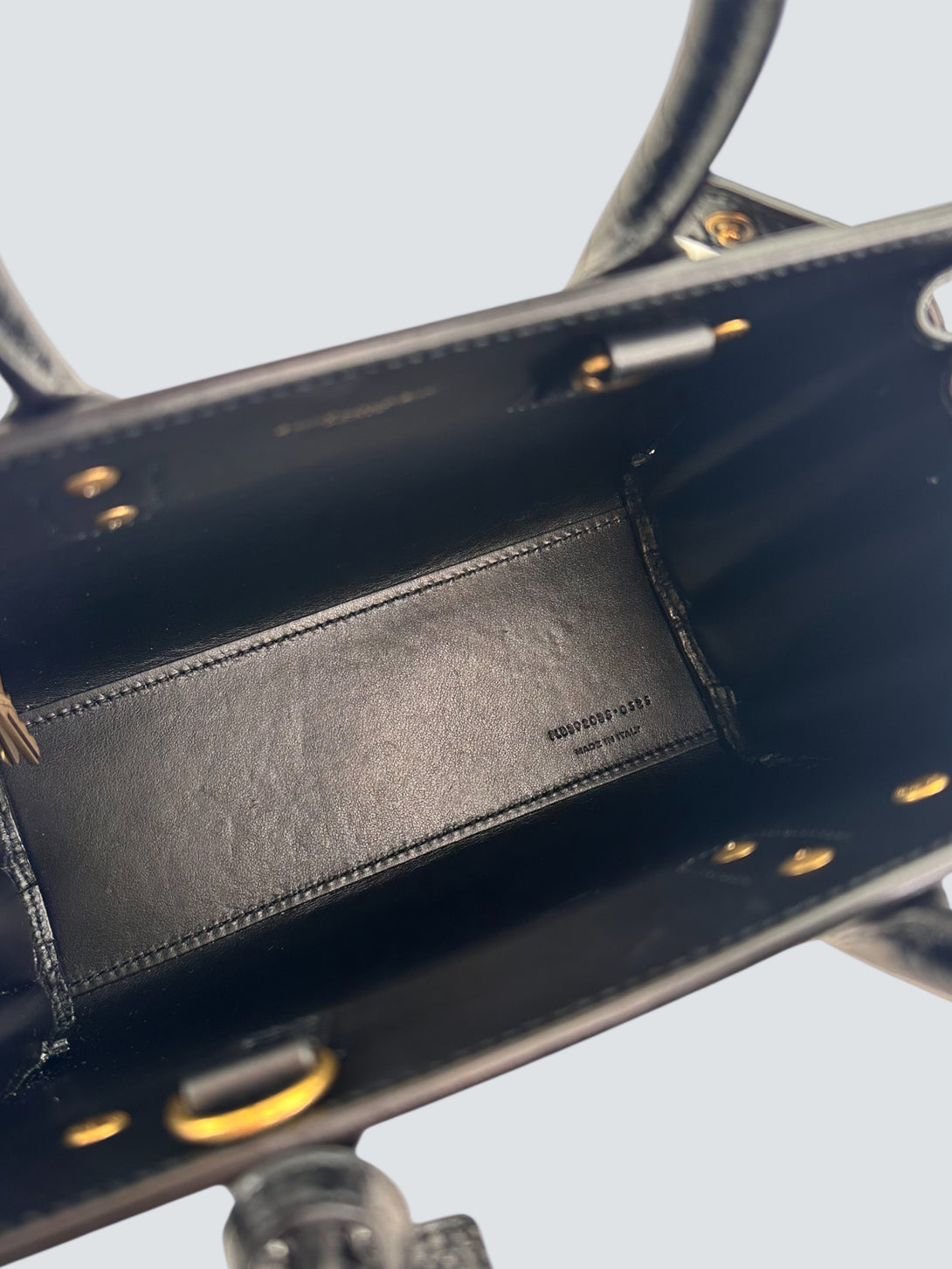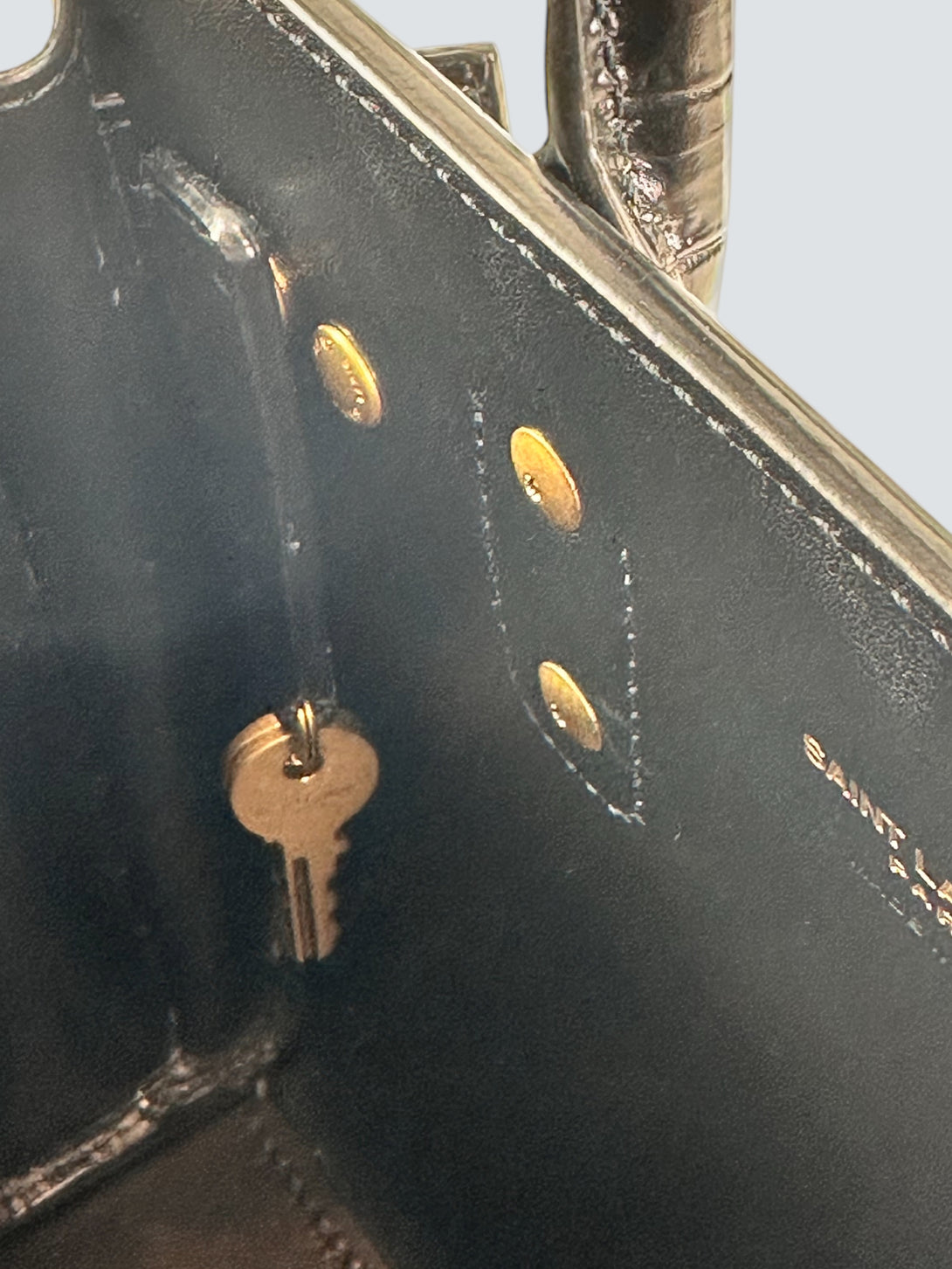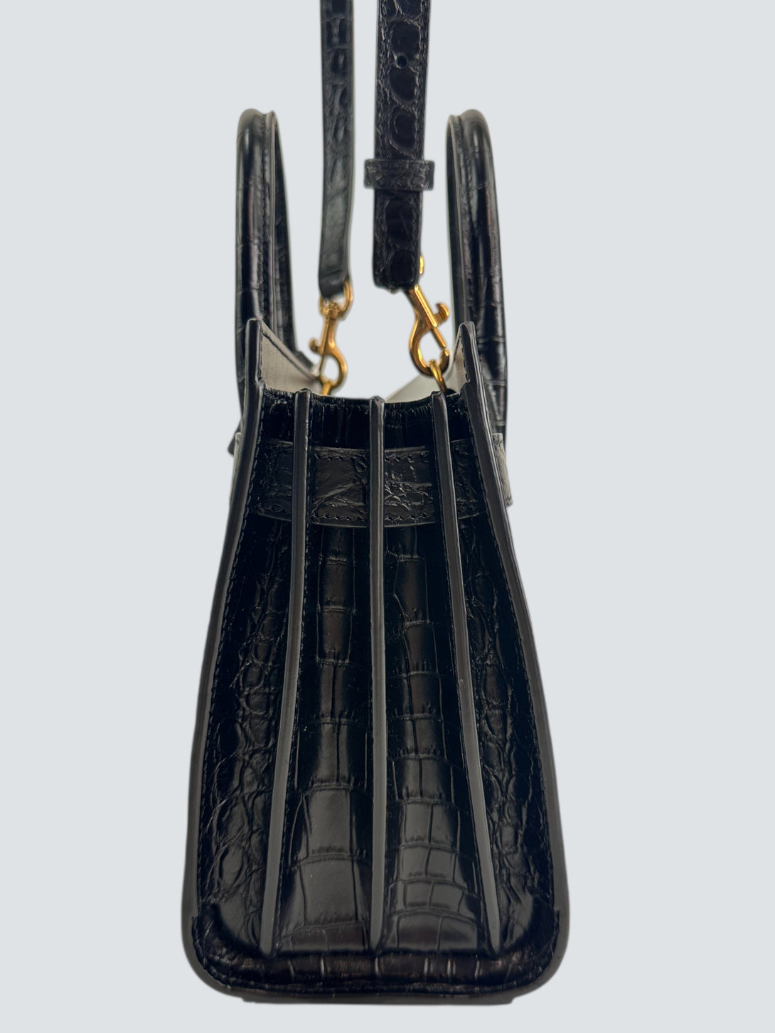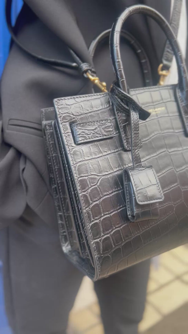 Saint Laurent Small Black Croc Effect Leather Sac du Jour
