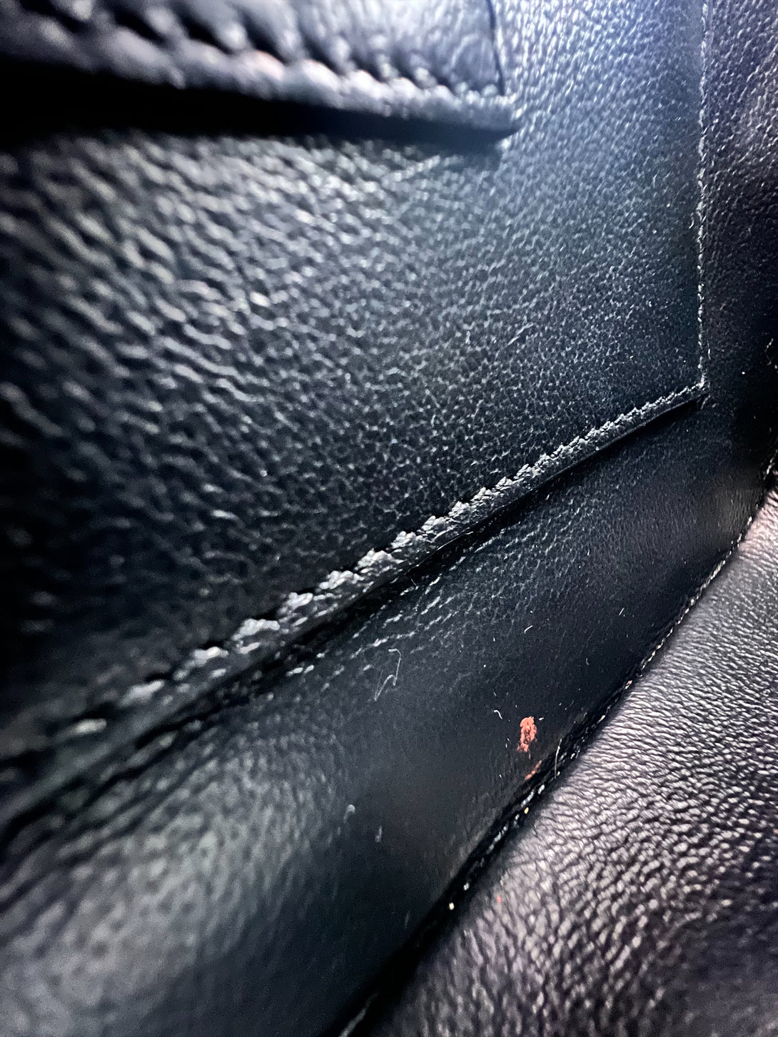 Fair: Very prominent wear, may have holes on corners, severe scuffs, piping of bag showing and pen marks to exterior. Interior may have pen or make up marks.
