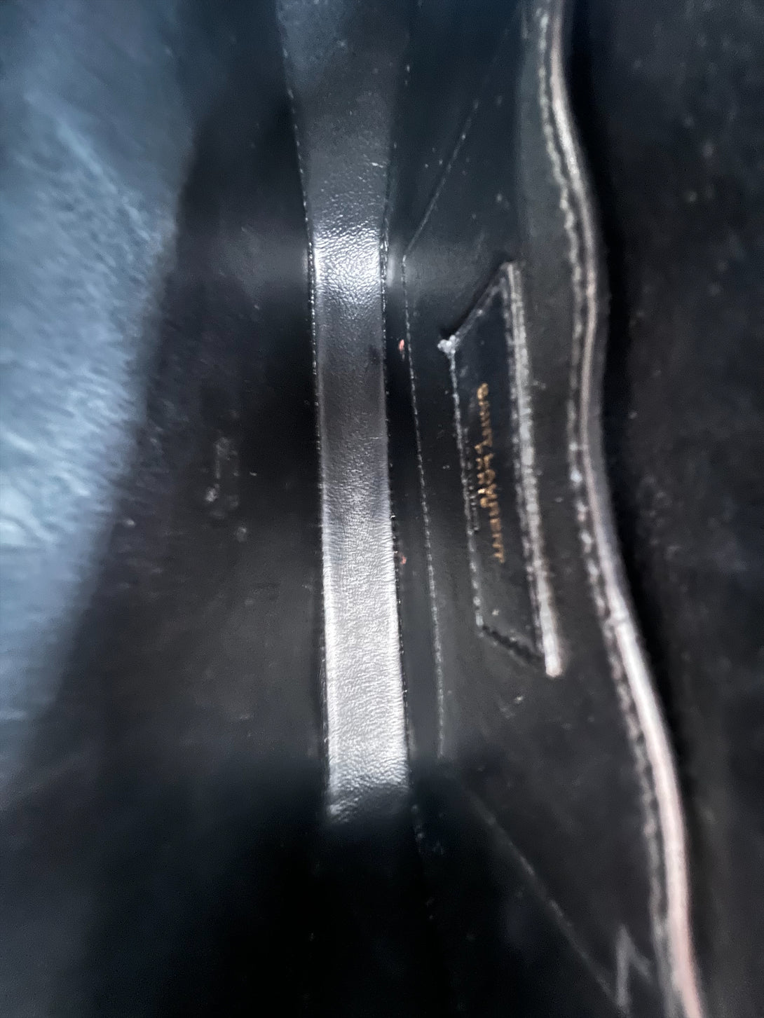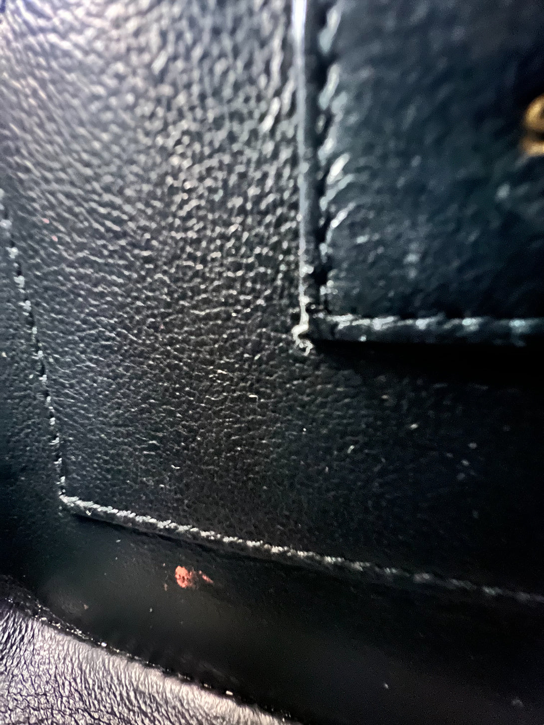 Good: Items show more prominent wear such as noticeable discoloration, stains and snags to fabric. May have worn corners and handles, tarnishing to hardware and creasing to leather. Pen or make up marks may be visible in the interior of the bag.