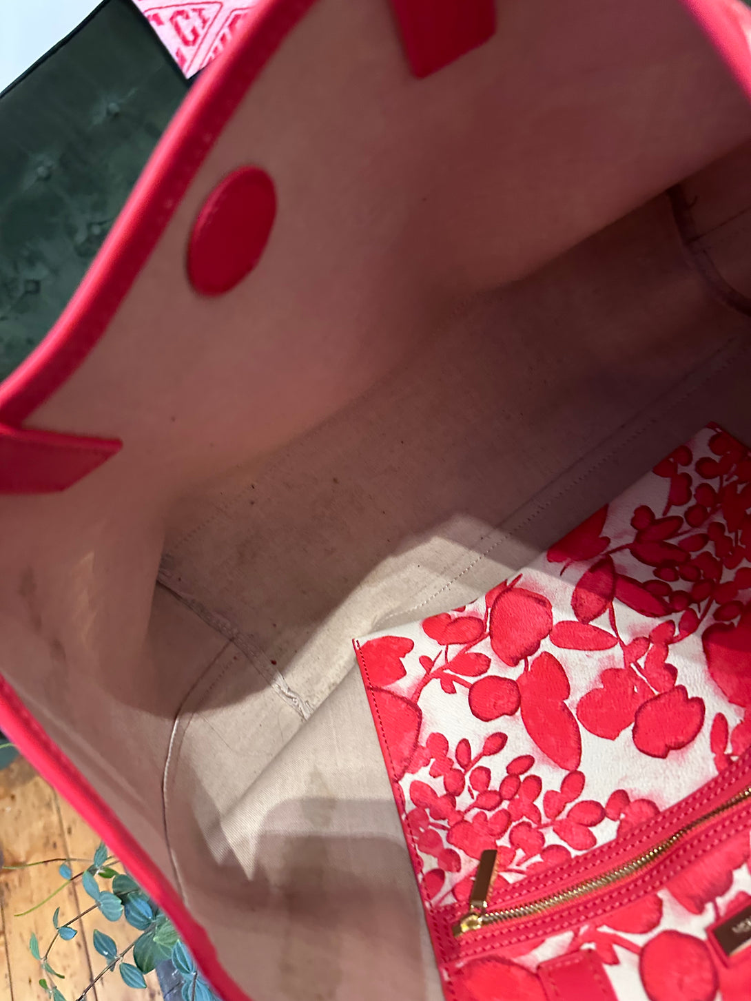 Tory Burch Red Printed Canvas Tote