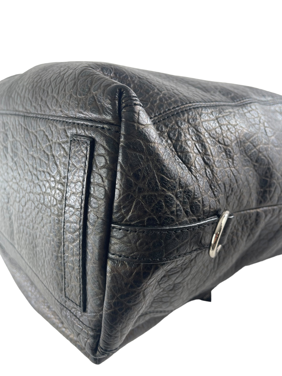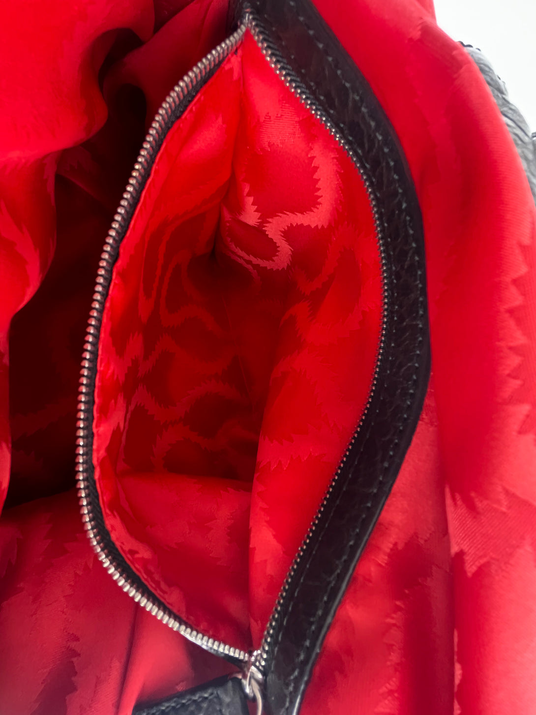 Good: Items show more prominent wear such as noticeable discoloration, stains and snags to fabric. May have worn corners and handles, tarnishing to hardware and creasing to leather. Pen or make up marks may be visible in the interior of the bag.