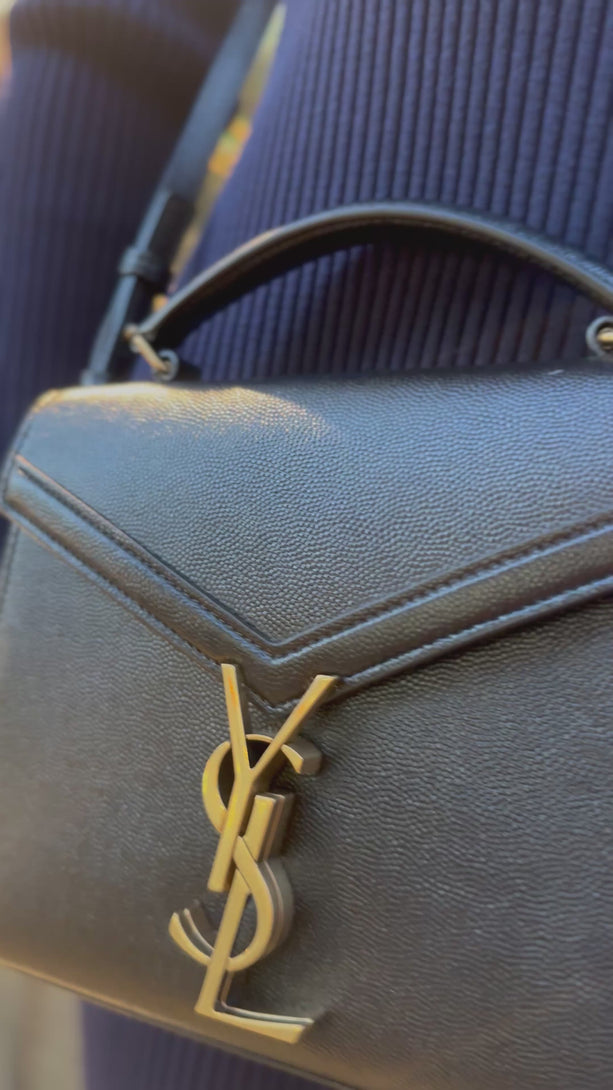 Yves Saint Laurent Black Leather Mini Cassandra Top Handle Handbag