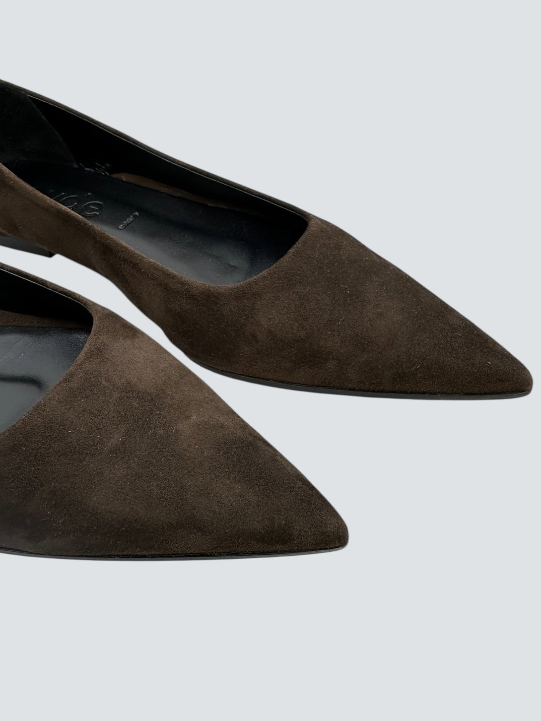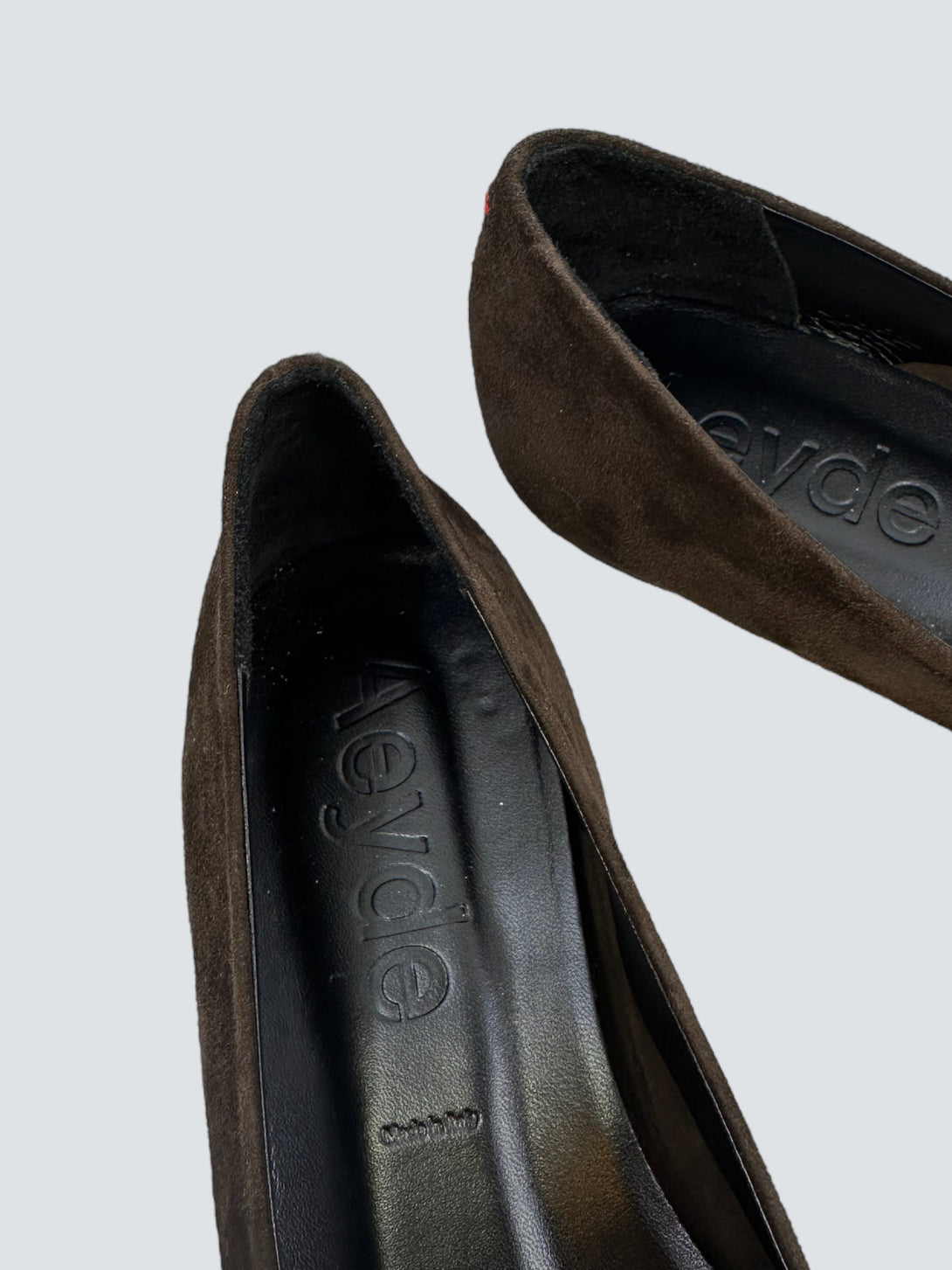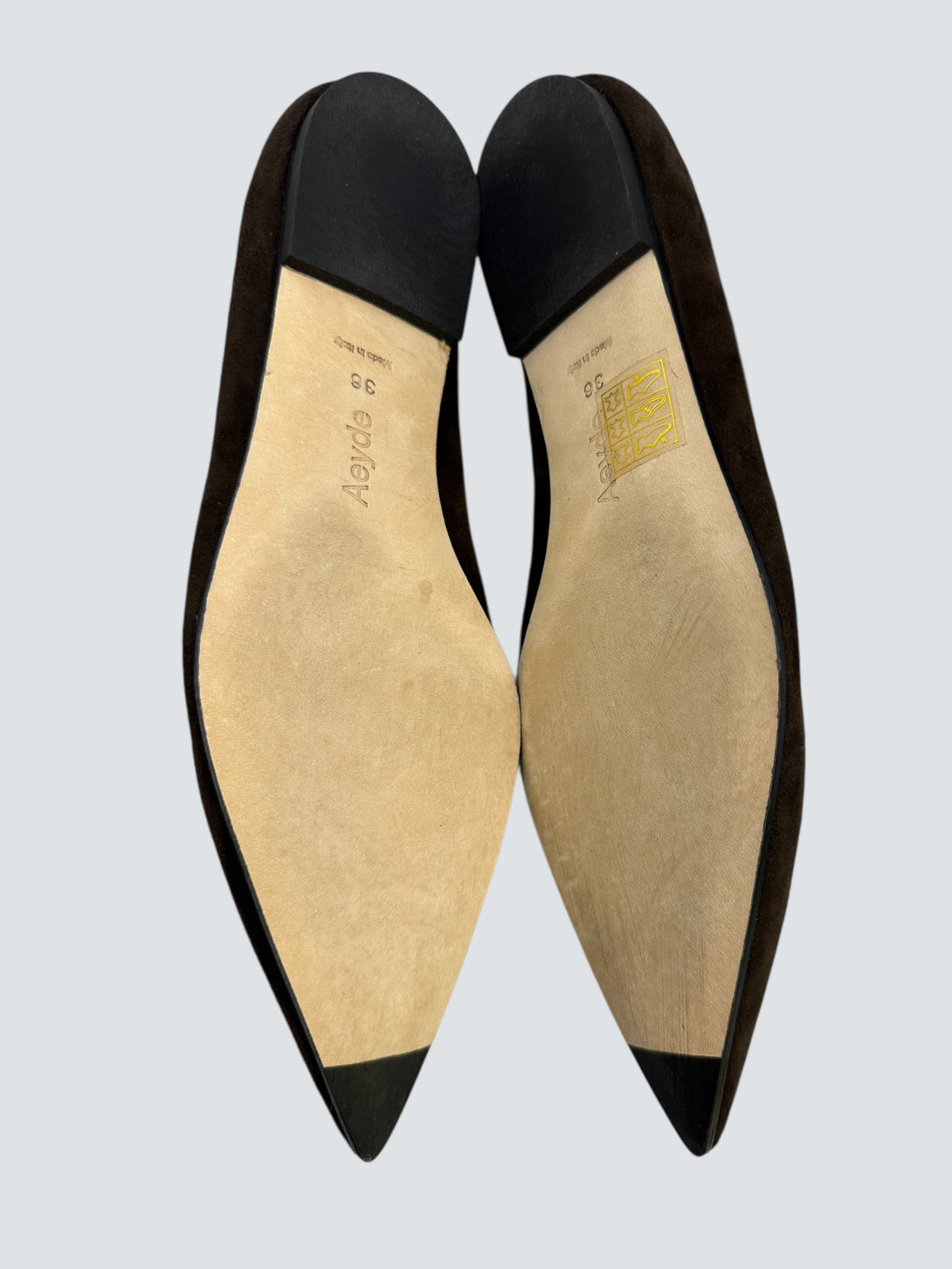 Aeyde Berlin Chocolate Brown Leather Suede Flats - Size UK 3.5