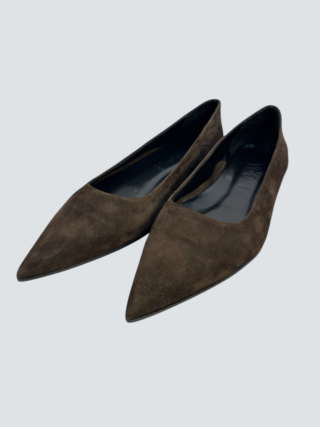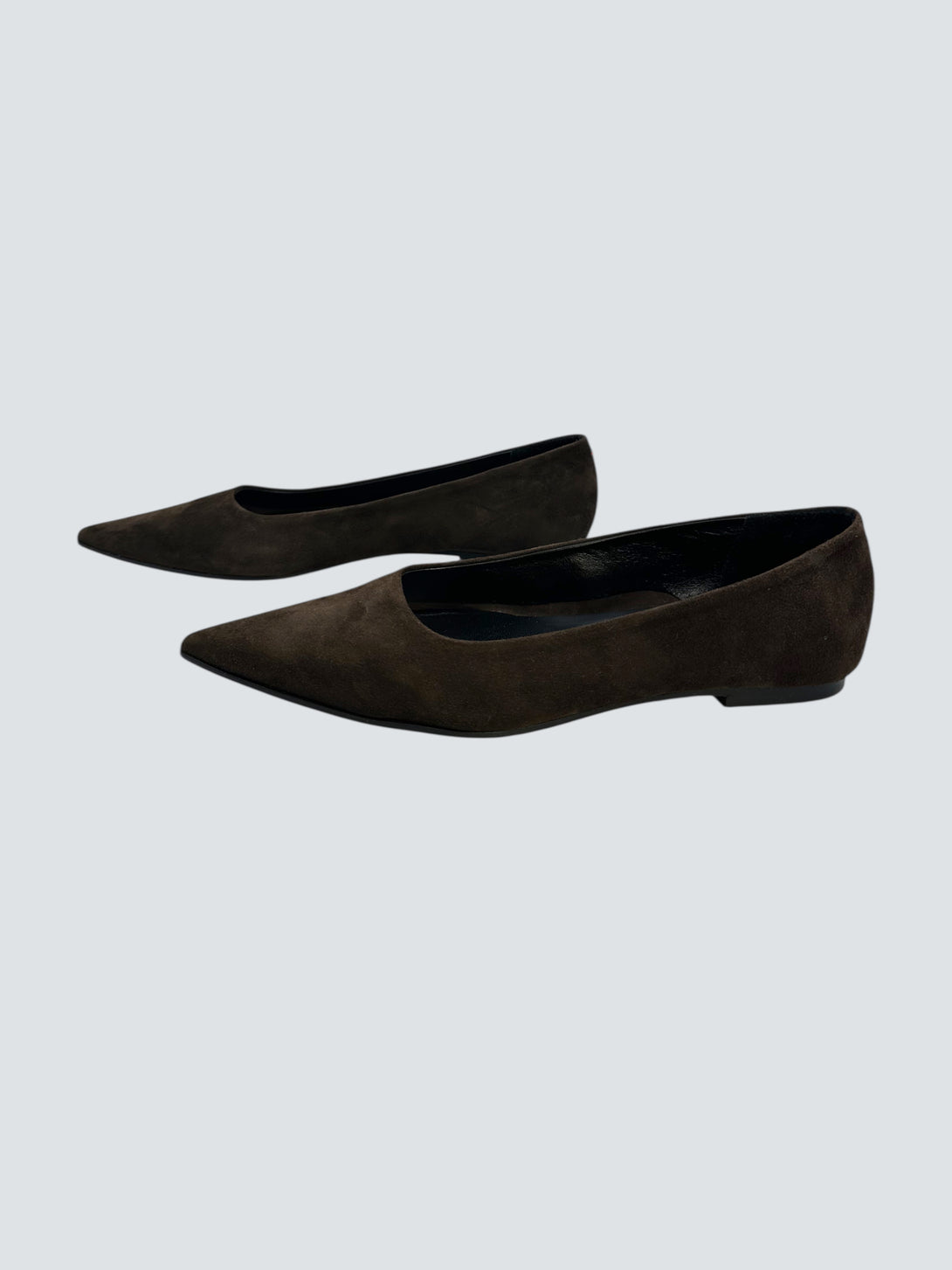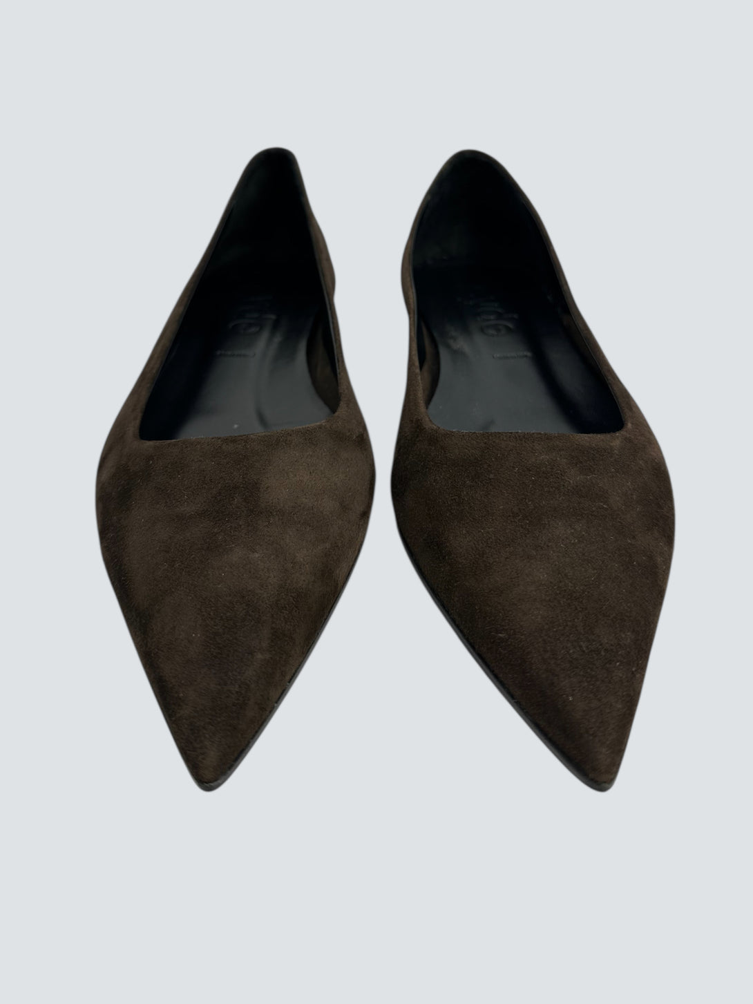 Aeyde Berlin Chocolate Brown Leather Suede Flats - Size UK 3.5